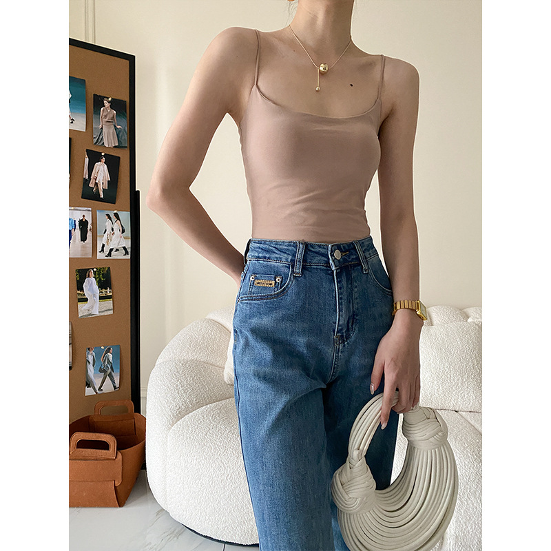 시난 가슴패드가 있는 프렌치 스타일 슬림핏 원라인 네크라인 홀터탑, 아름다운 등 디자인, 봄용 베이스레이어 SN2822
