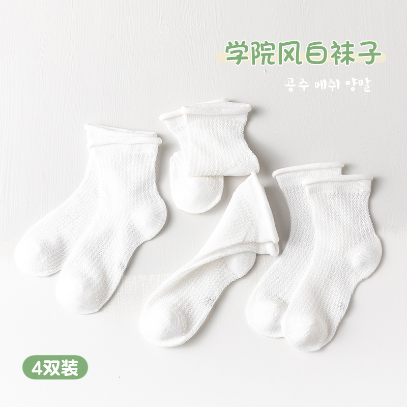 통기성 메쉬 양말 단색 레이스 양말 여름 얇은 흰색 양말 여아면 양말 아기 튜브 양말 어린이 양말스토어 가기