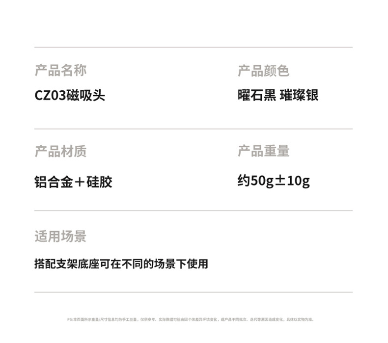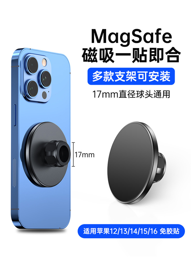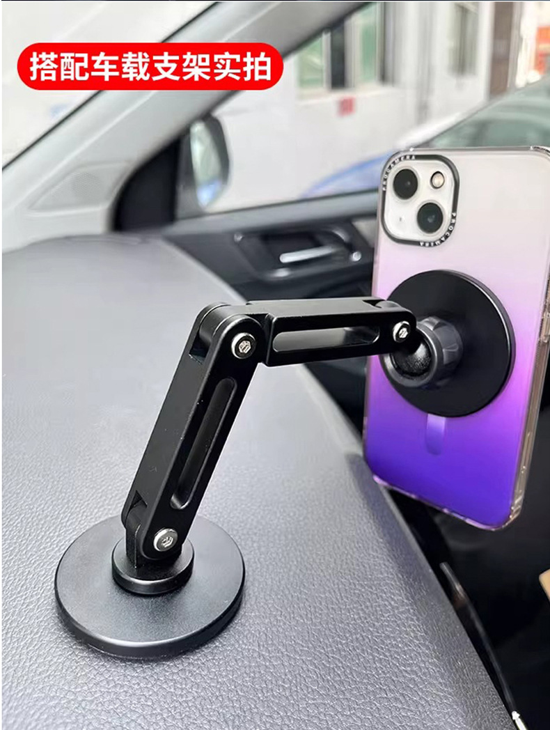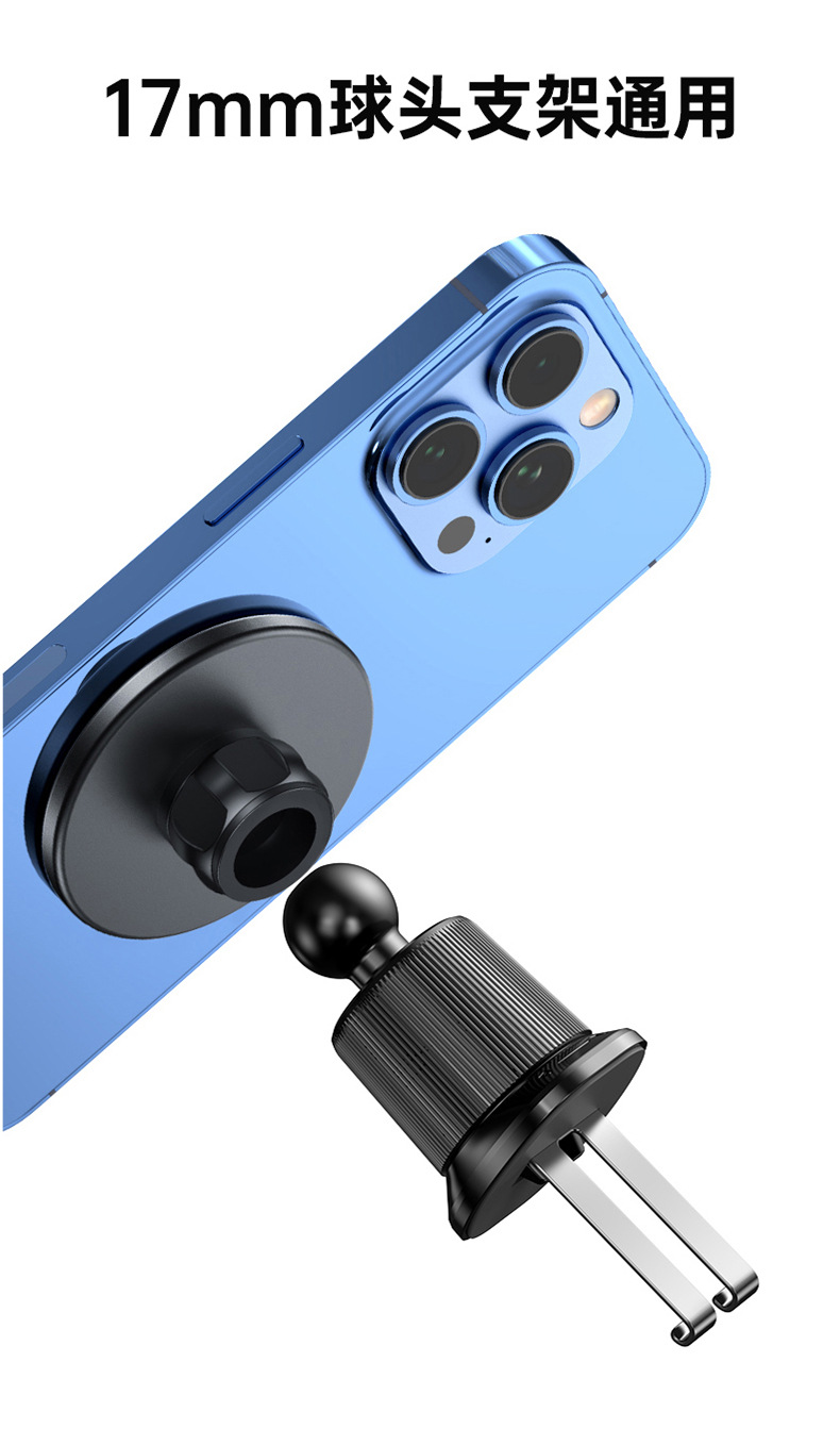本产品采用高标号铝合金,CNC机加工处理,精密度高,外观喷砂氧化工艺,更具数码产品质感。采用N52高强磁铁,配套通用17mm球头通用底座+螺母,广泛适用车载手机、桌面支架等系列。