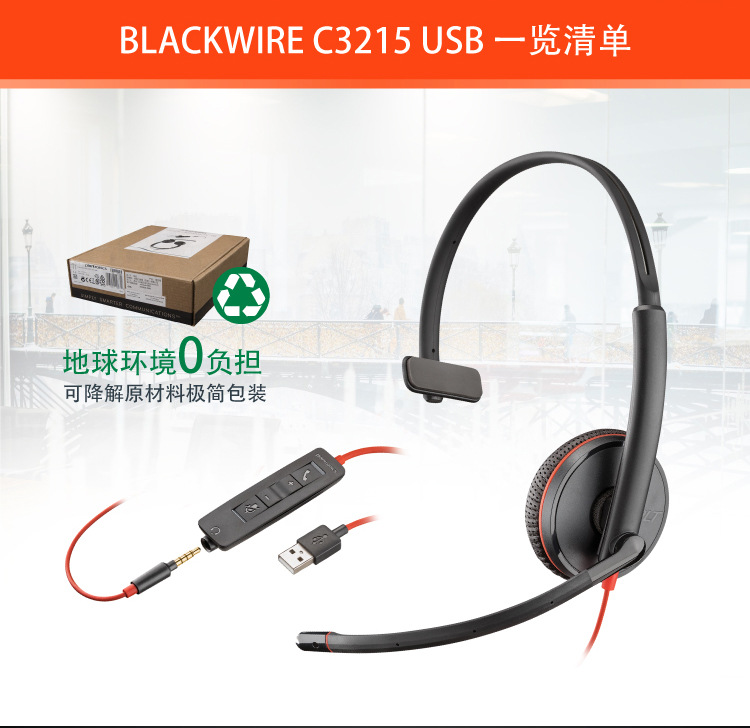 Qiteli/Plantronics C3215 단일 귀 3.5mm + USB 헤드셋 소음 감소 헤드셋스토어 가기