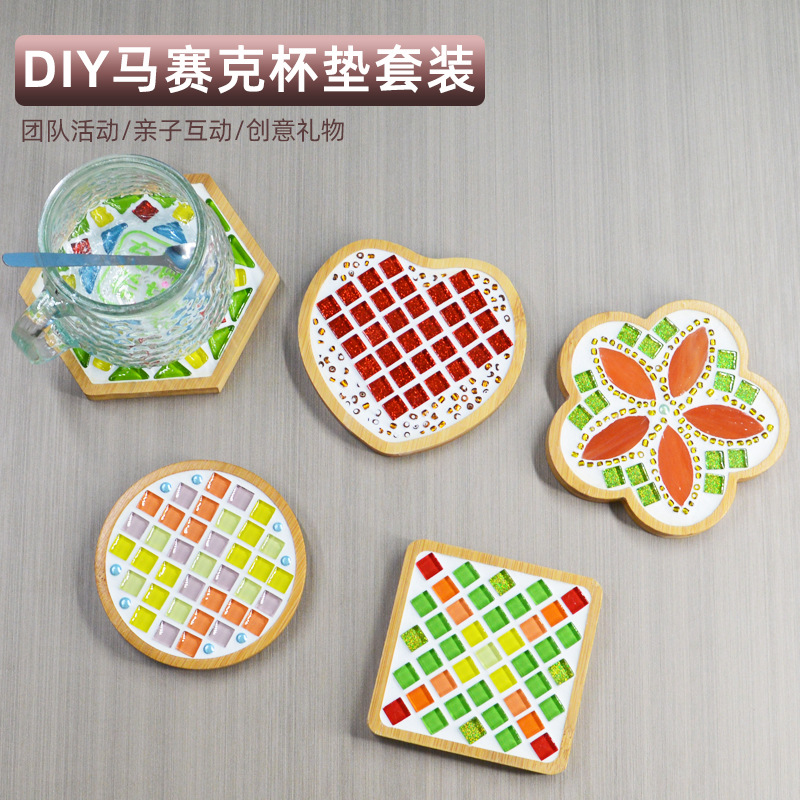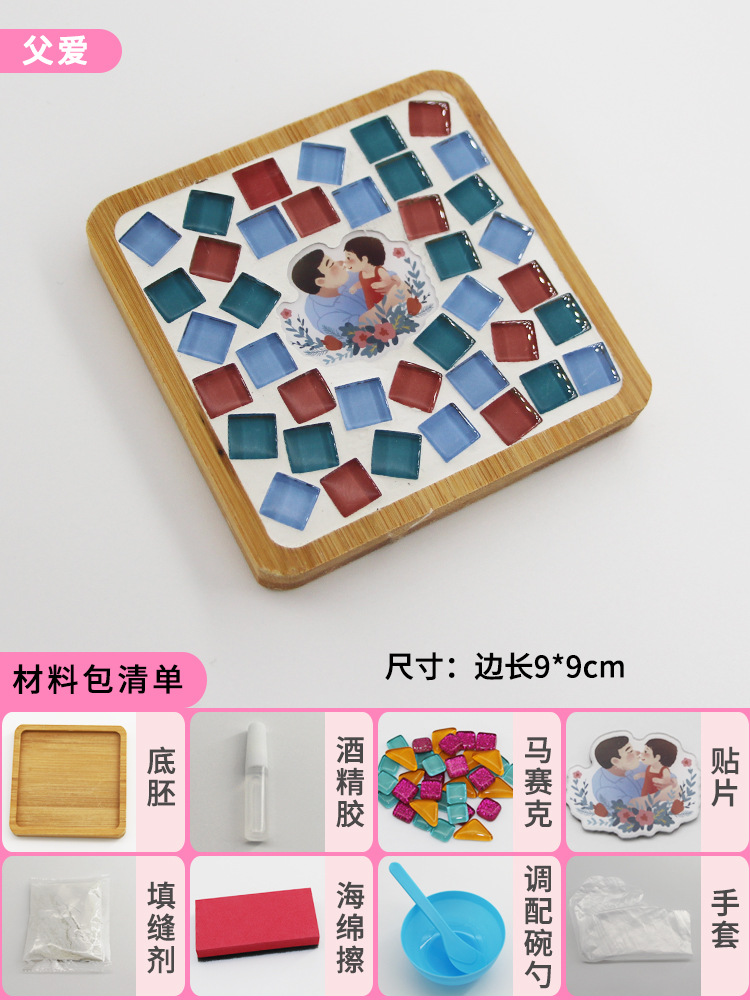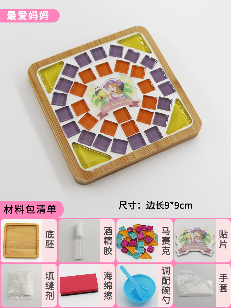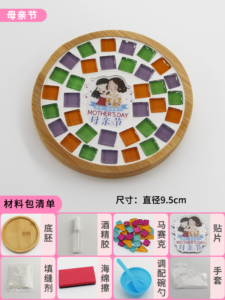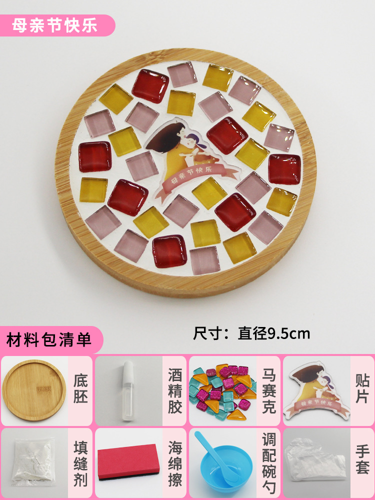 모자이크 컵받침 어머니날 수제 DIY 재료 패키지 유치원 워밍업 활동 부모-자녀 콜라주 어린이 장난감스토어 가기
