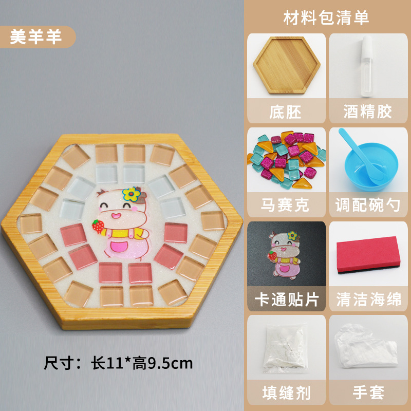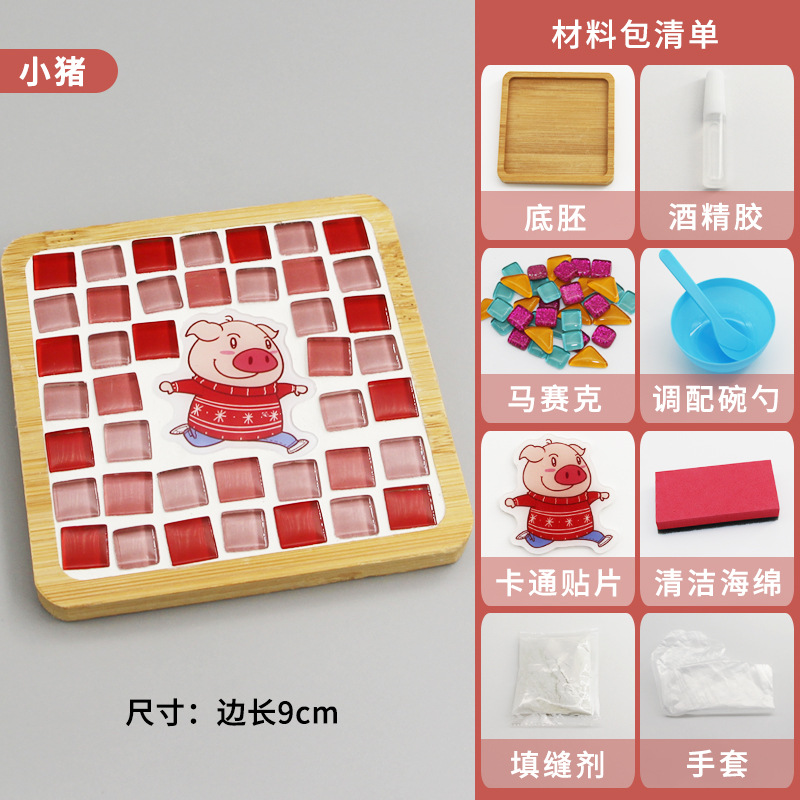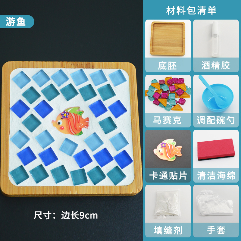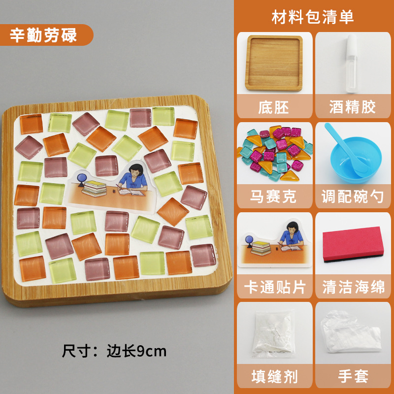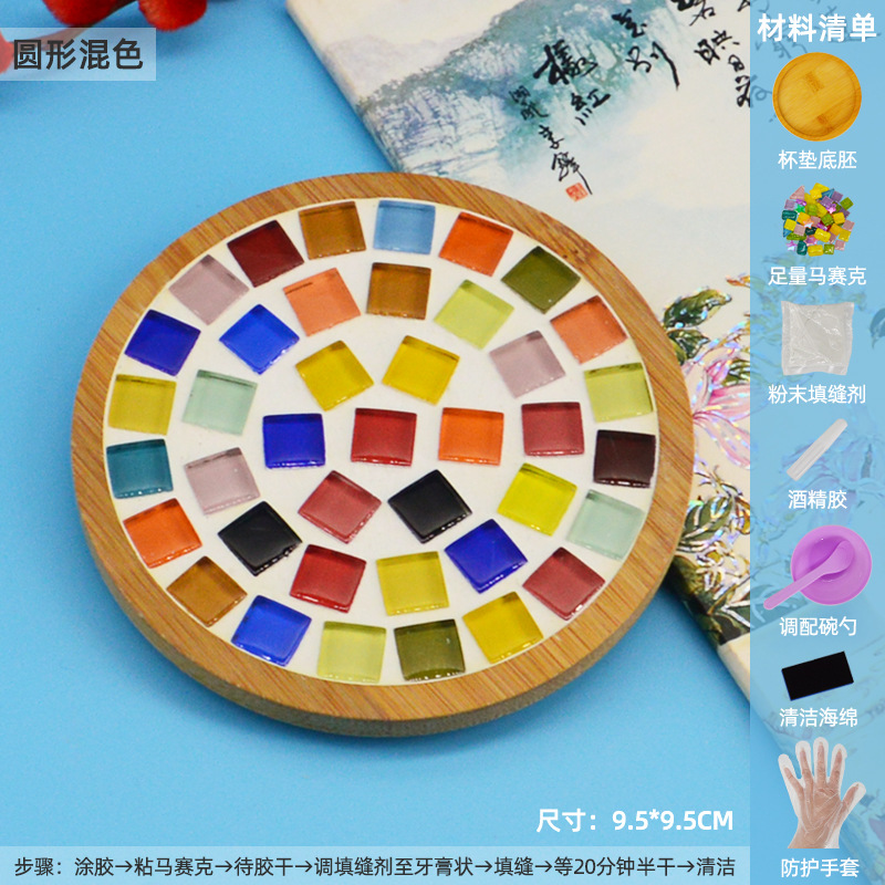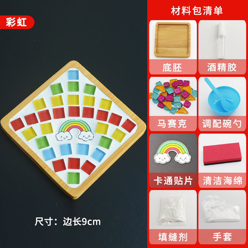 모자이크 컵받침 어머니날 수제 DIY 재료 패키지 유치원 워밍업 활동 부모-자녀 콜라주 어린이 장난감스토어 가기