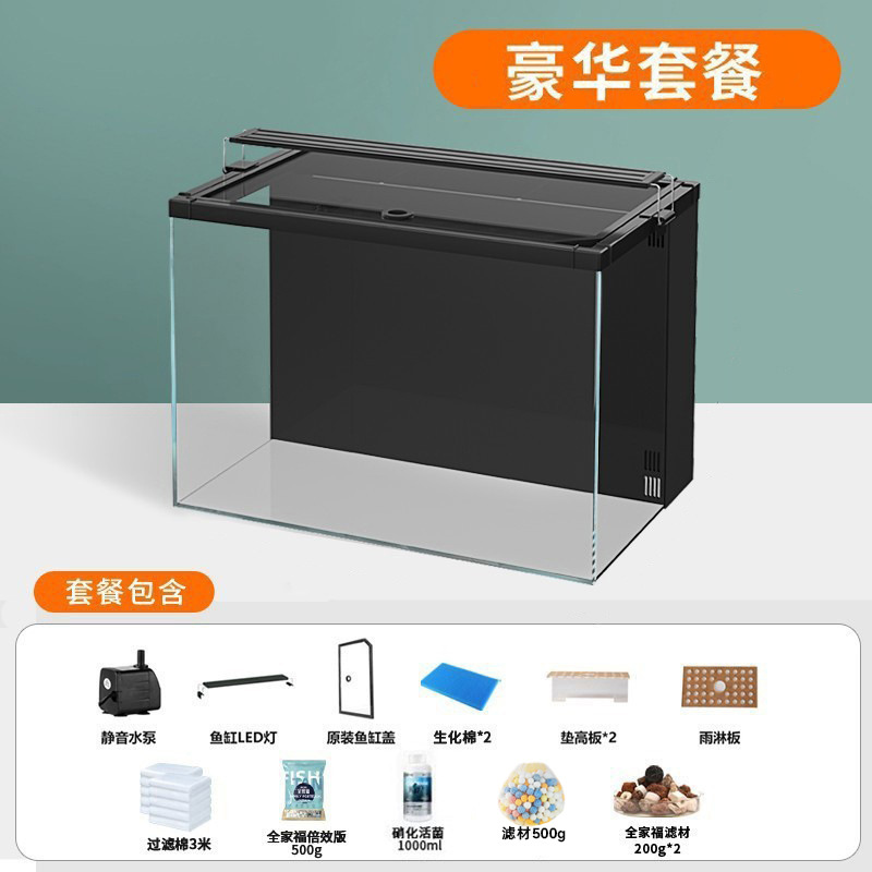 어항 슈퍼 화이트 백 필터 작은 거실 생태 데스크탑 금붕어 탱크 조경 탱크 가정용 거북이 탱크 자체 순환 물 잔디 탱크스토어 가기