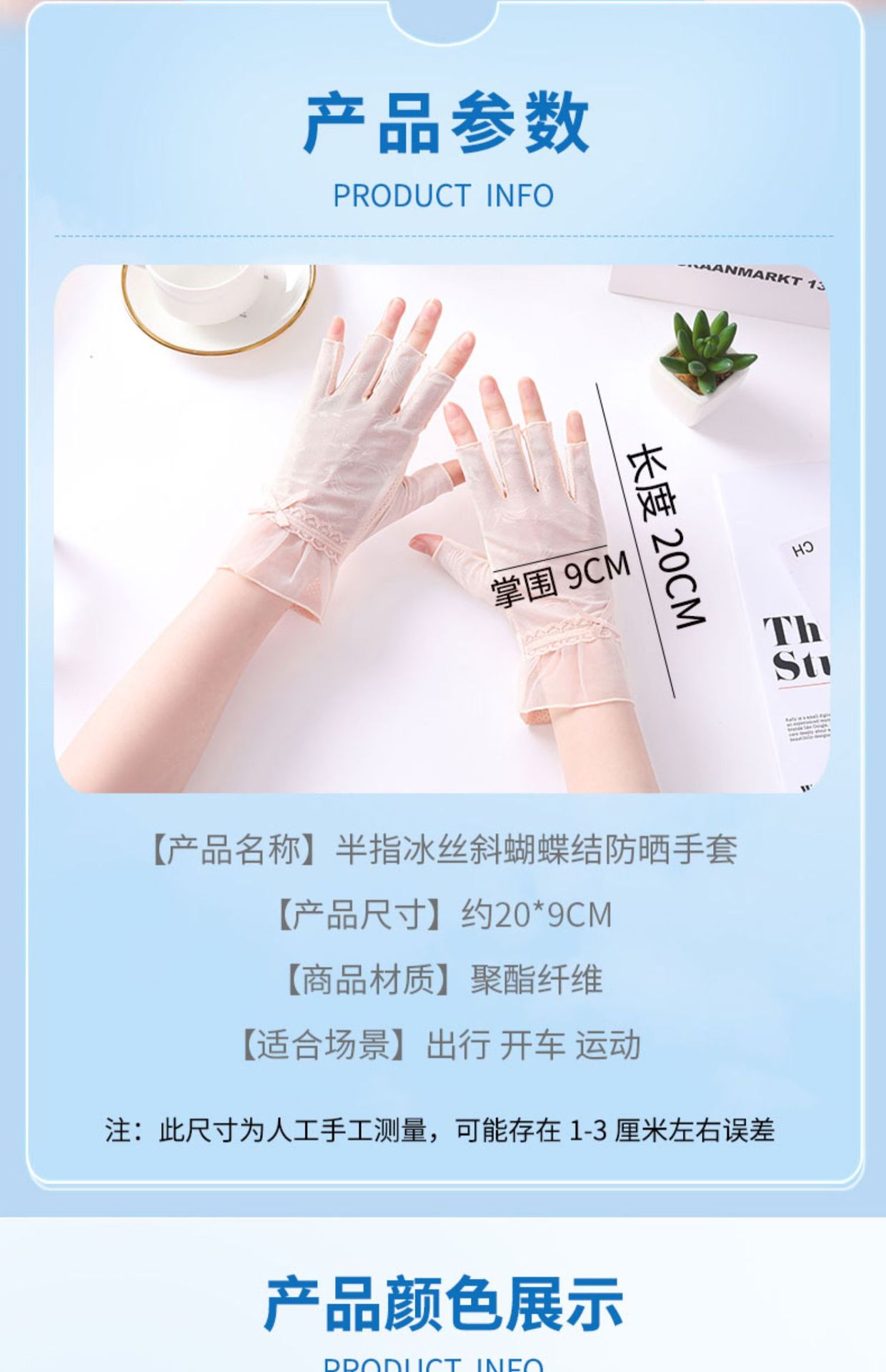 여성용 반 손가락 얼음 실크 얇은 자외선 차단 장갑 여름 핑거리스 운전 및 사이클링 미끄럼 방지 통기성 레이스 매니큐어 핸드 가드스토어 가기