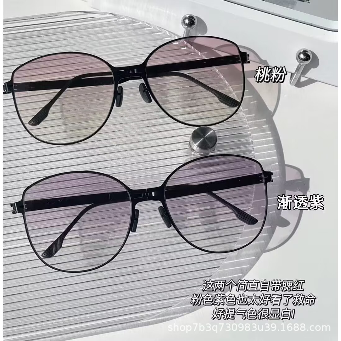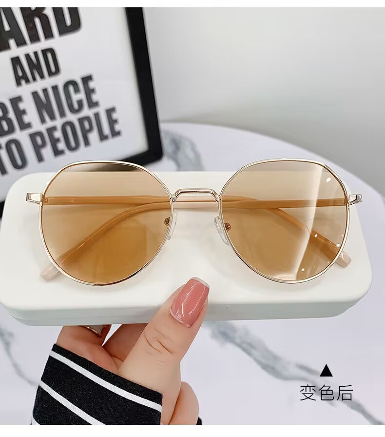 2023时尚新款金属铜架变色太阳镜浅遮阳镜潮流百搭街拍防蓝光眼镜