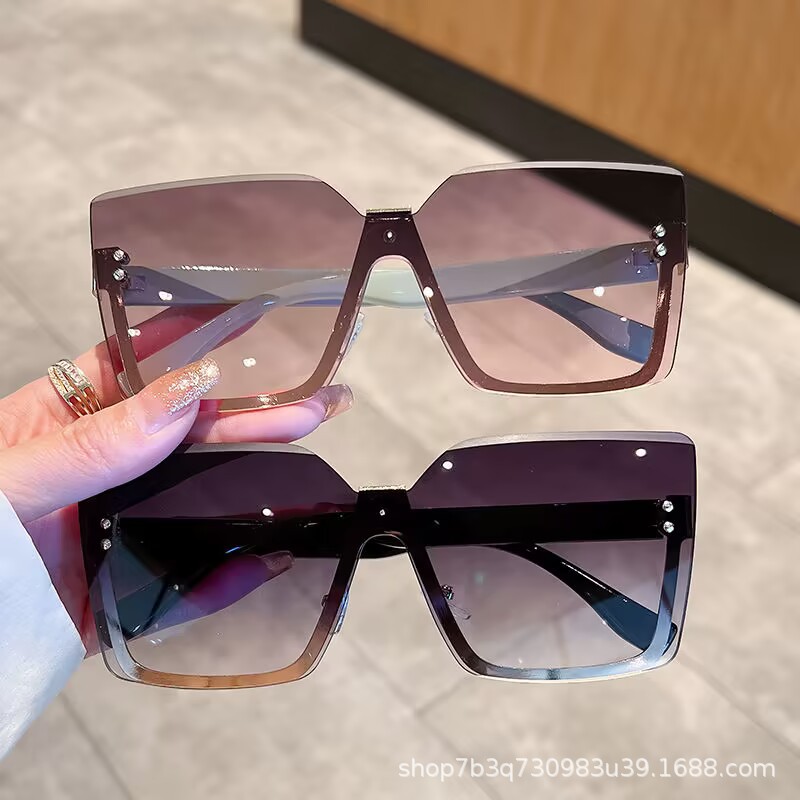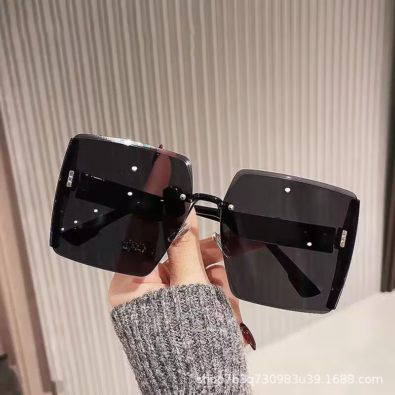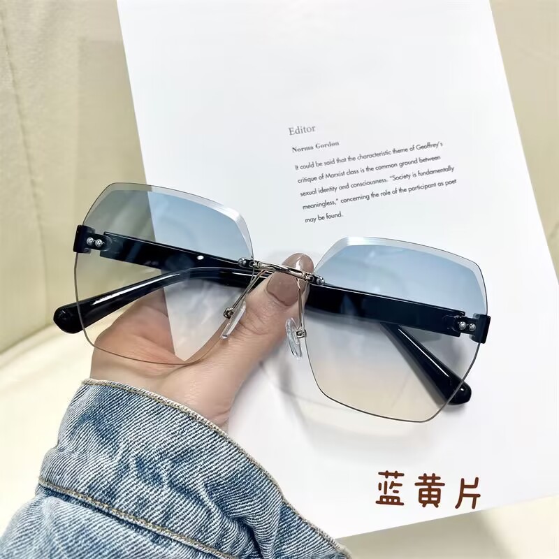 2023新款无框切边墨镜网红潮流女款百搭遮阳镜时尚街拍防晒太阳镜