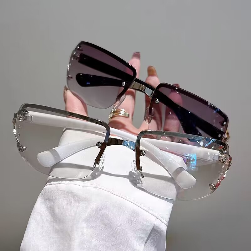 新款时尚女款高雅太阳镜无边框墨镜ins潮款穿搭遮阳眼镜 防紫外线
