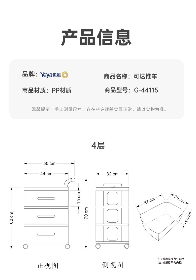 Yeya Haixing 간단한 스토리지 랙 아기 제품 다층 모바일 스토리지 랙 신생아 아기 플로어 트롤리 PP