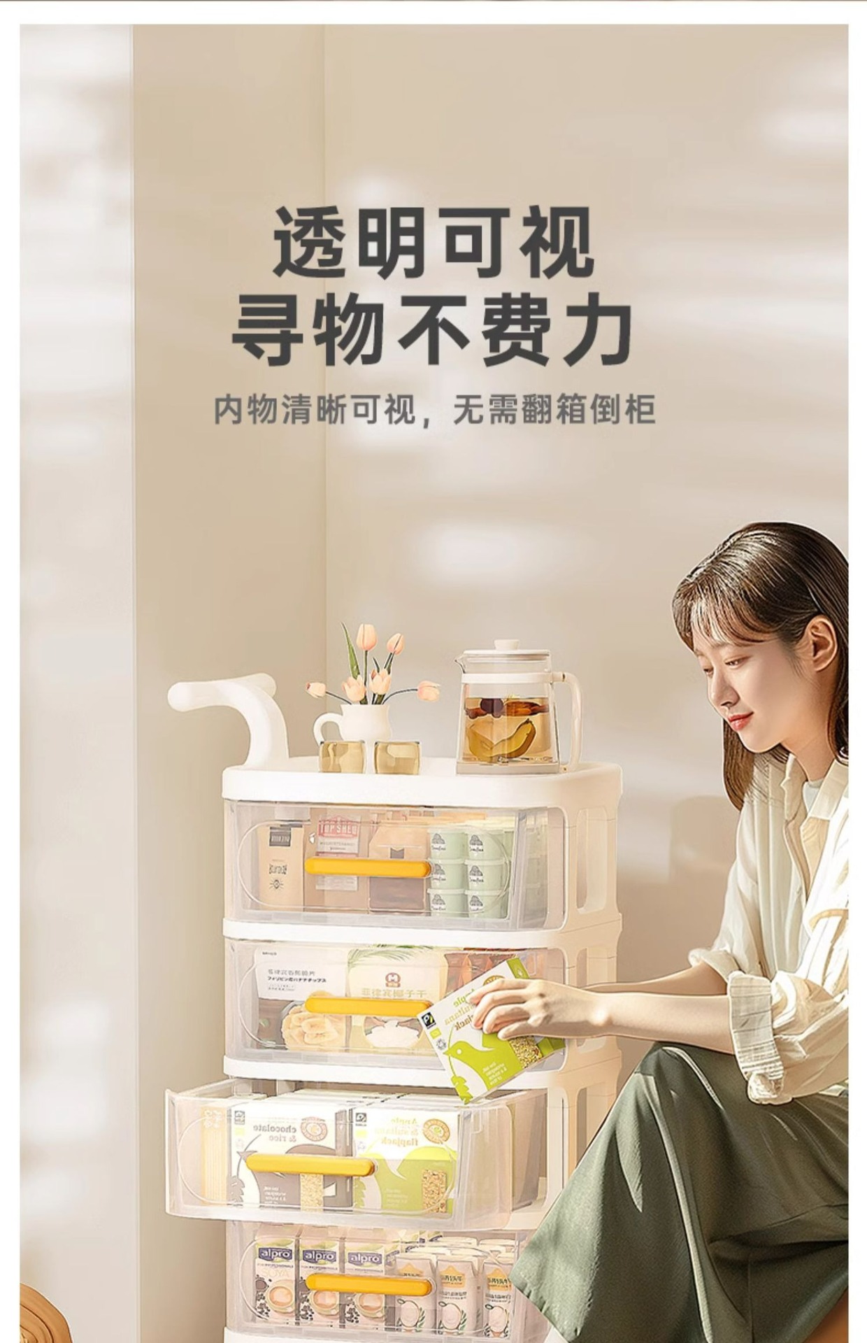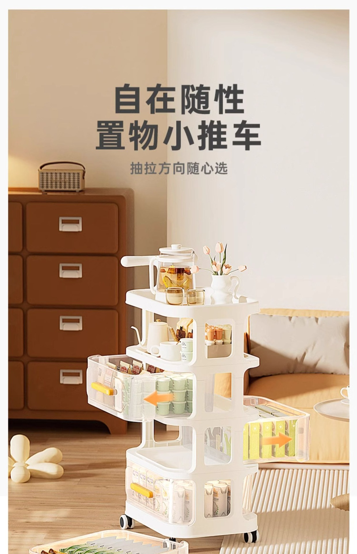 Yeya Haixing 간단한 스토리지 랙 아기 제품 다층 모바일 스토리지 랙 신생아 아기 플로어 트롤리 PP스토어 가기