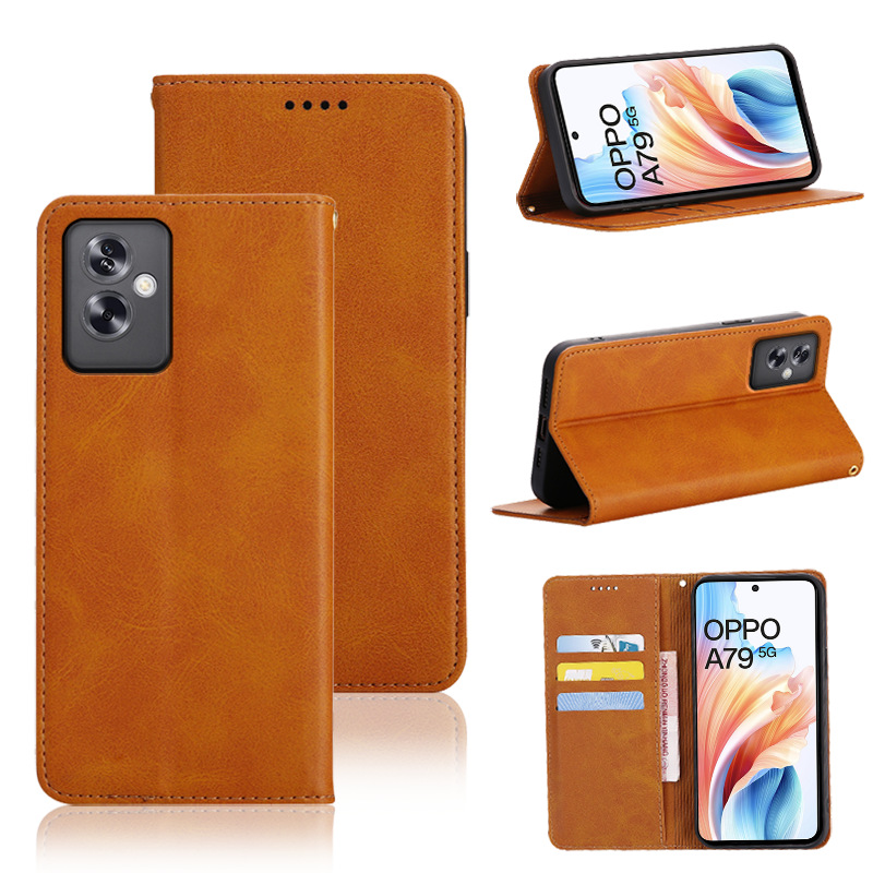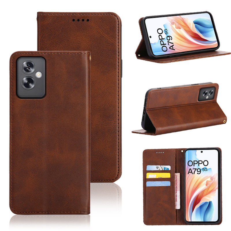 OPPO Reno11 A OPPO 일본 모델 송아지 가죽 강한 자기 간단한 플립 온 휴대 전화 가죽 케이스에 적용스토어 가기