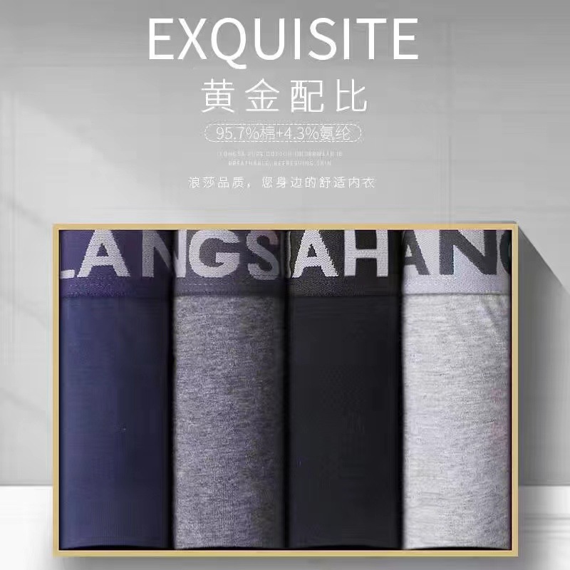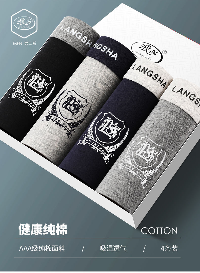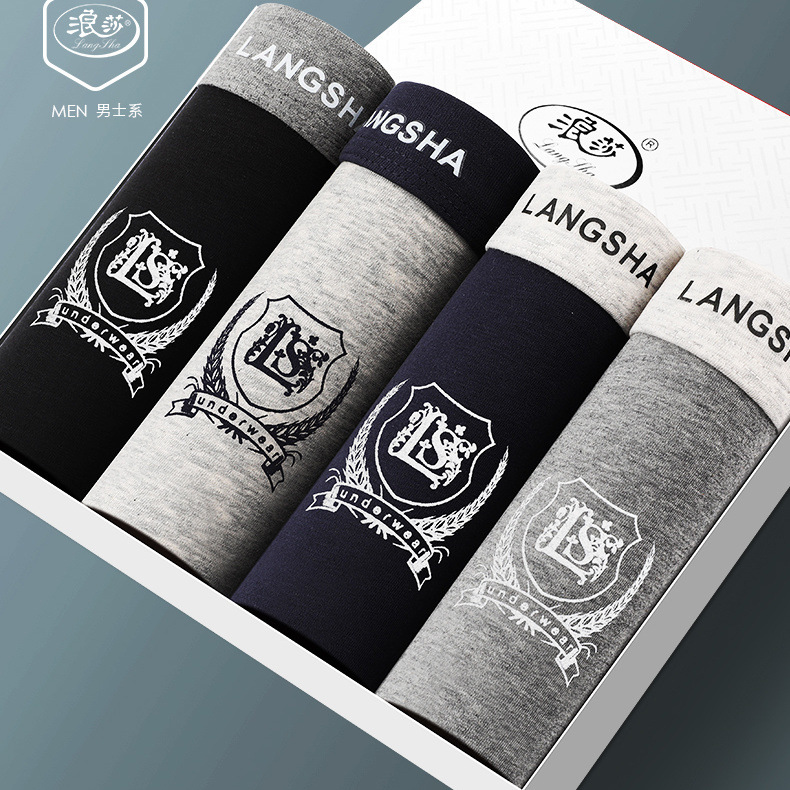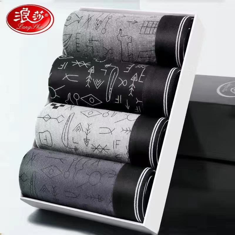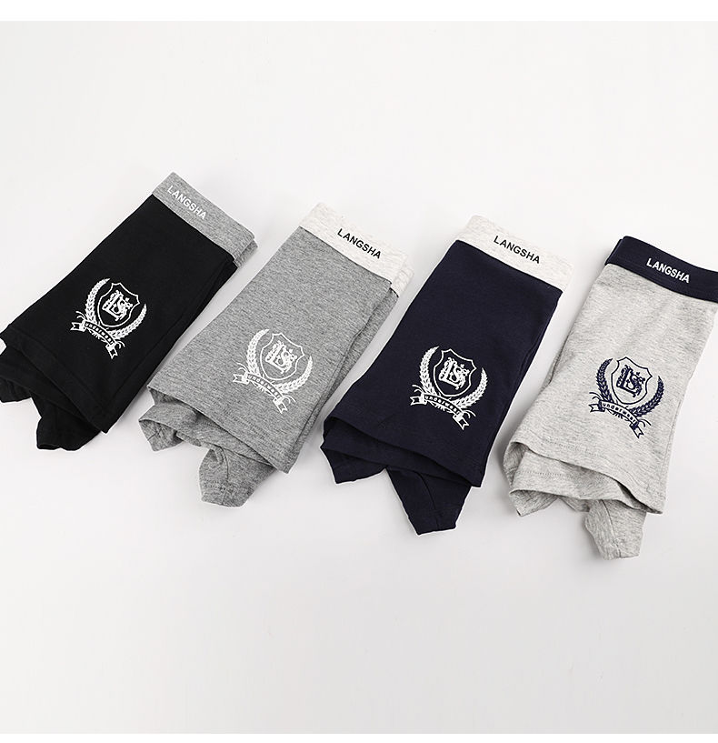 4 팩 Langsha 남성 속옷 순면 통기성 항균 편안한 성인 복서 복서 반바지 인쇄 유행