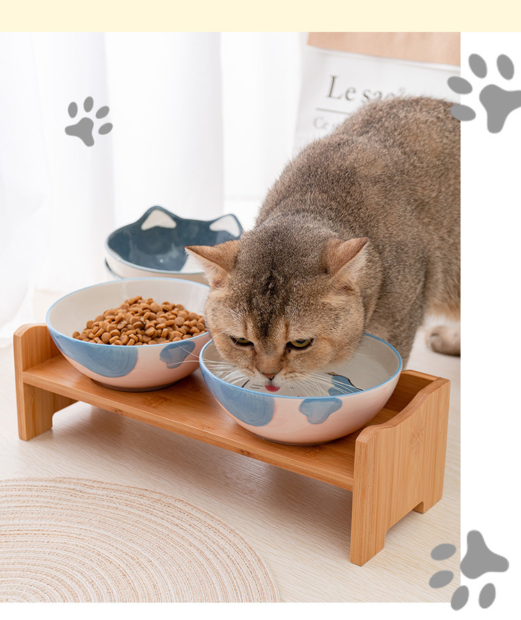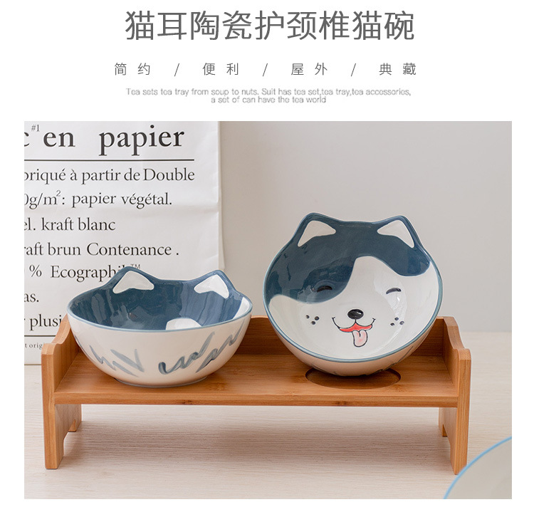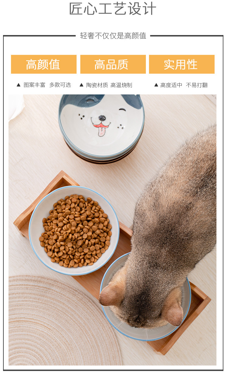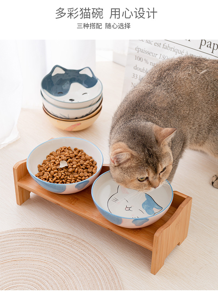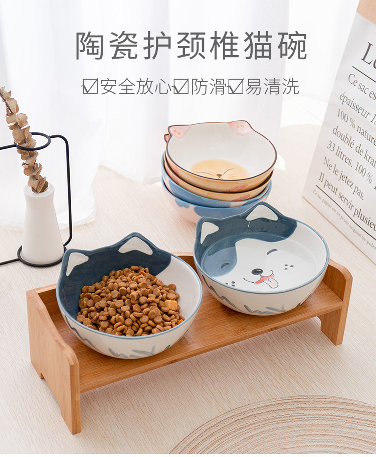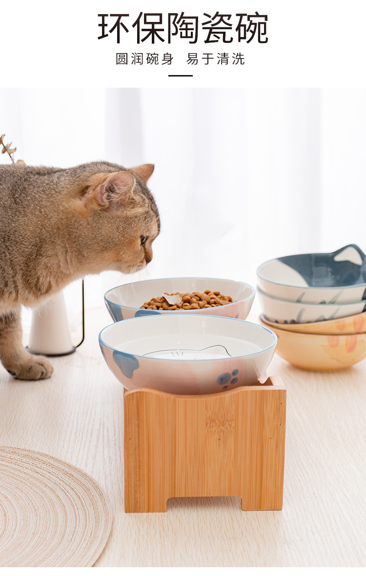 세라믹 고양이 그릇 랙 보호 경추 미끄럼 방지 검은 방지 턱 고양이 음식 그릇 작은 개 노크 방지 고양이 용품스토어 가기