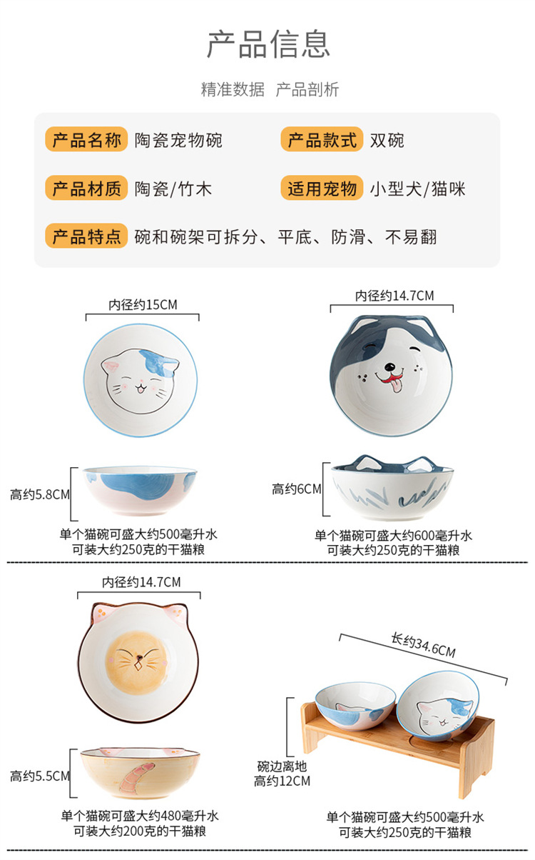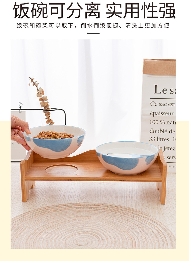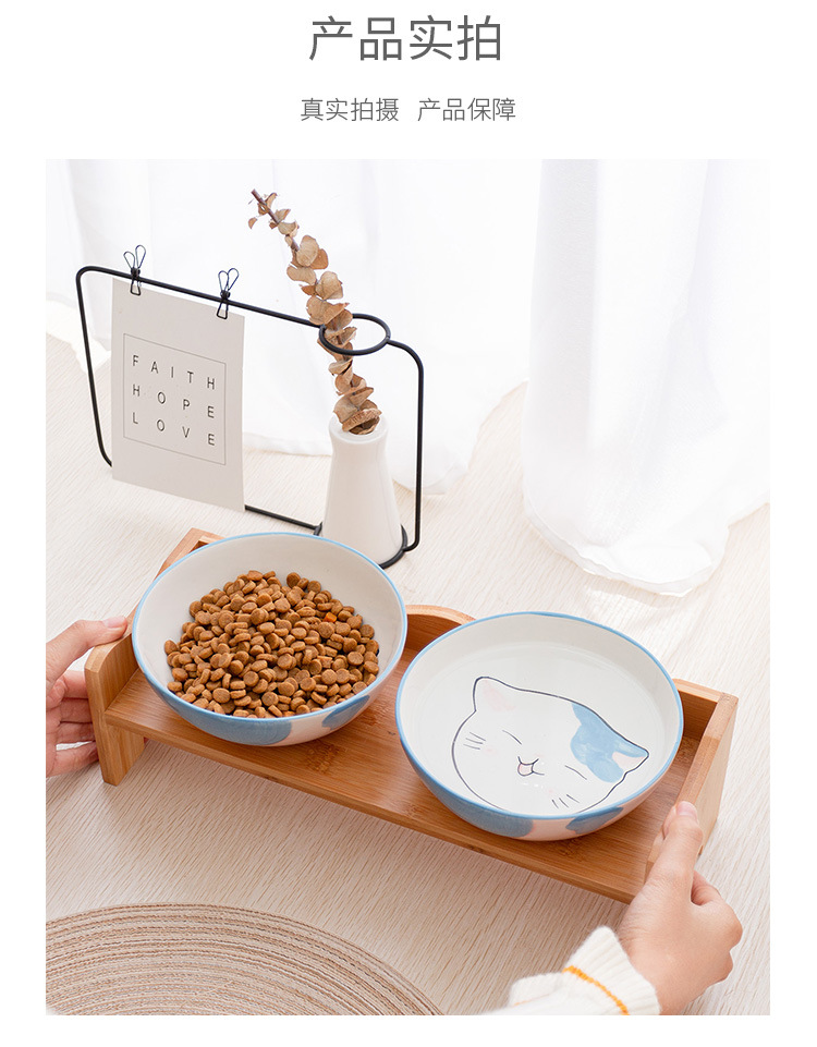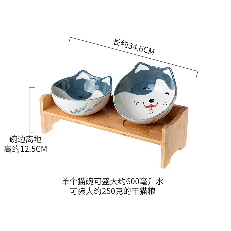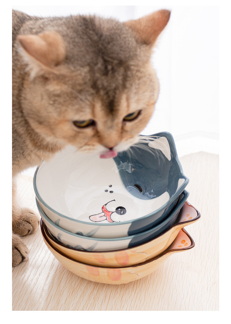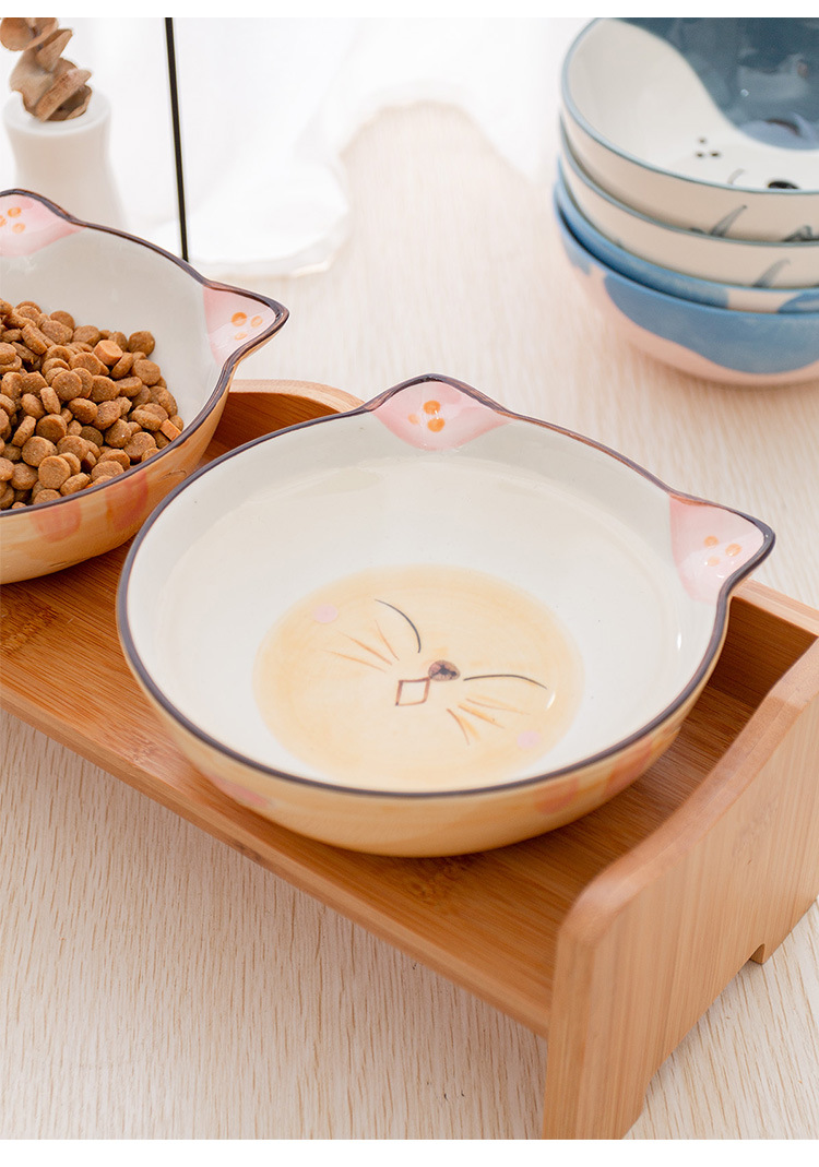 세라믹 고양이 그릇 랙 보호 경추 미끄럼 방지 검은 방지 턱 고양이 음식 그릇 작은 개 노크 방지 고양이 용품스토어 가기