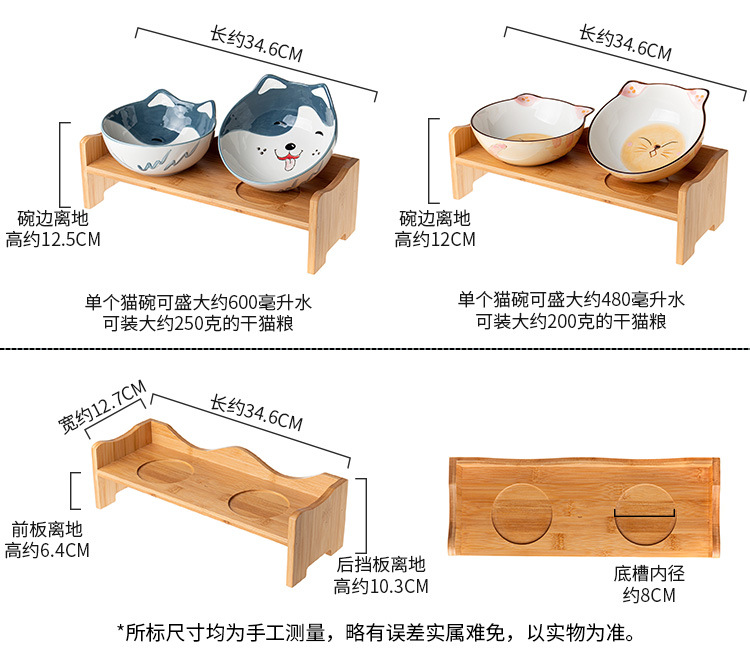 세라믹 고양이 그릇 랙 보호 경추 미끄럼 방지 검은 방지 턱 고양이 음식 그릇 작은 개 노크 방지 고양이 용품