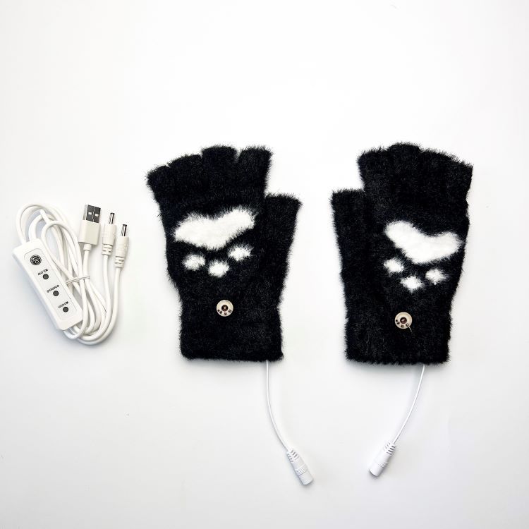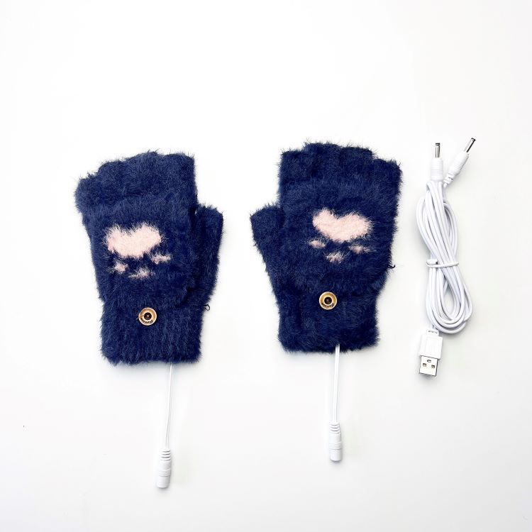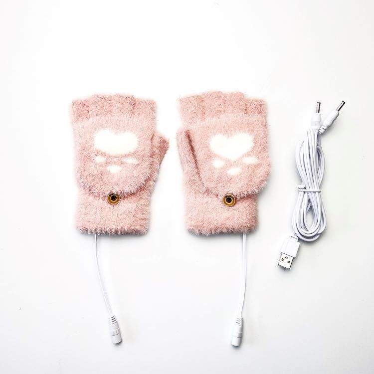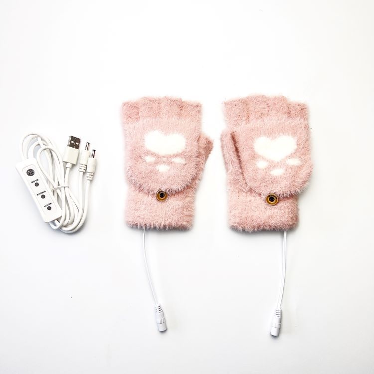 성인 학생용 크로스 보더 USB 전기 가열 장갑 니트 반 손가락 플립 곰 발 양면 가열 3 단 기어 온도 조절 옵션스토어 가기