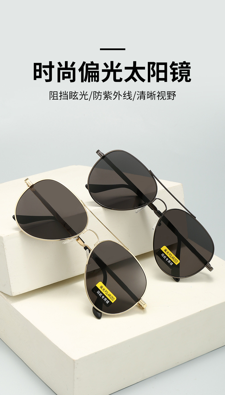 Xiaohongshu의 인기 있는 편광 이중 빔 선글라스, 운전용 금속 두꺼비 안경, 자외선 차단 및 블루라이트 방지 선글라스