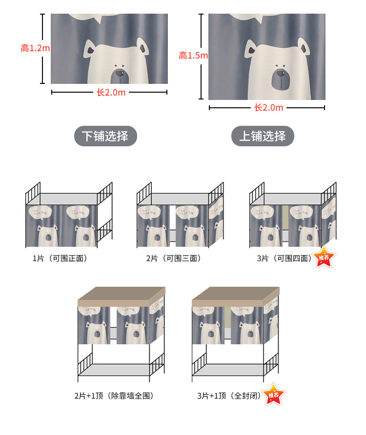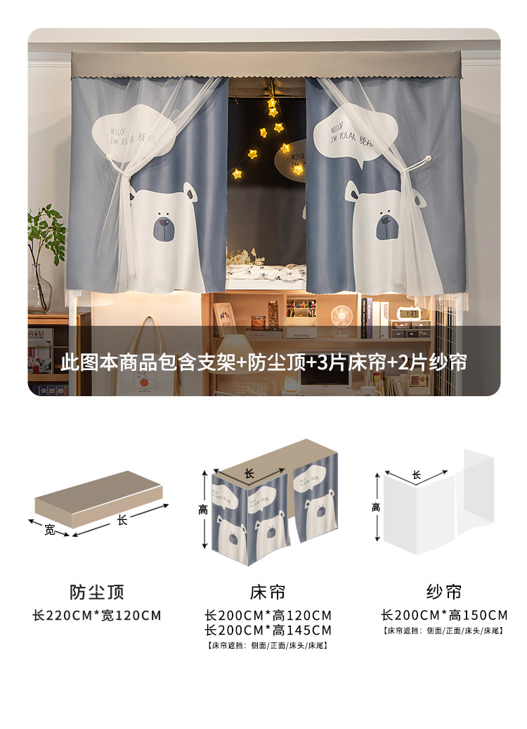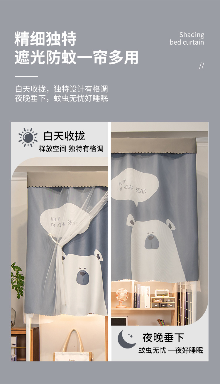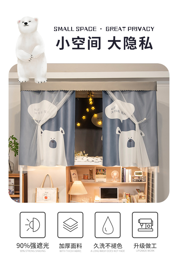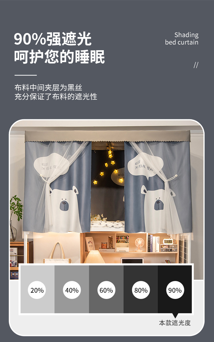 두꺼운 물리적 강한 음영 기숙사 침대 커튼 학생 기숙사 상부 이층 남성 하부 이층 여성 만화 침대 커튼 모기장 통합