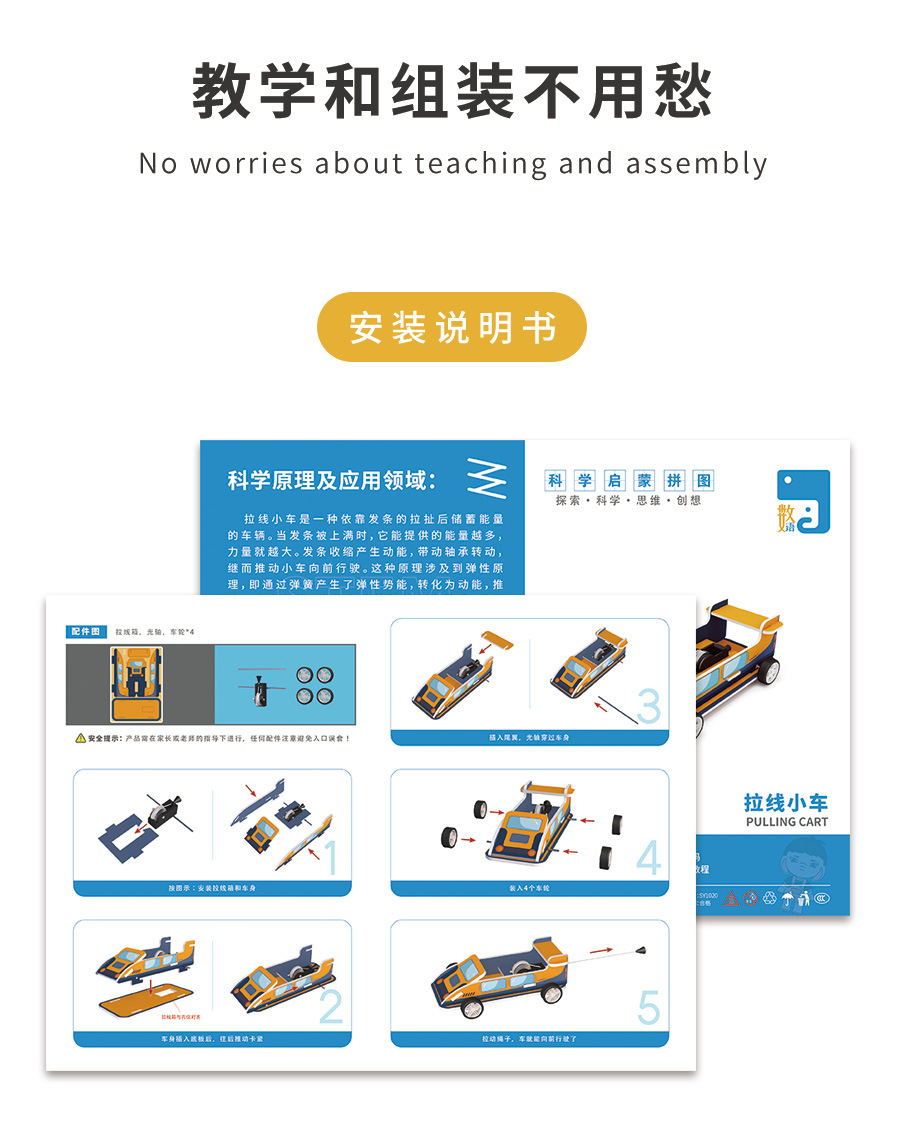창조적 인 작은 발명품 봄 탄성 원리를 가르치는 트롤리 과학 작은 장난감 유치원 수제 조립 그리기