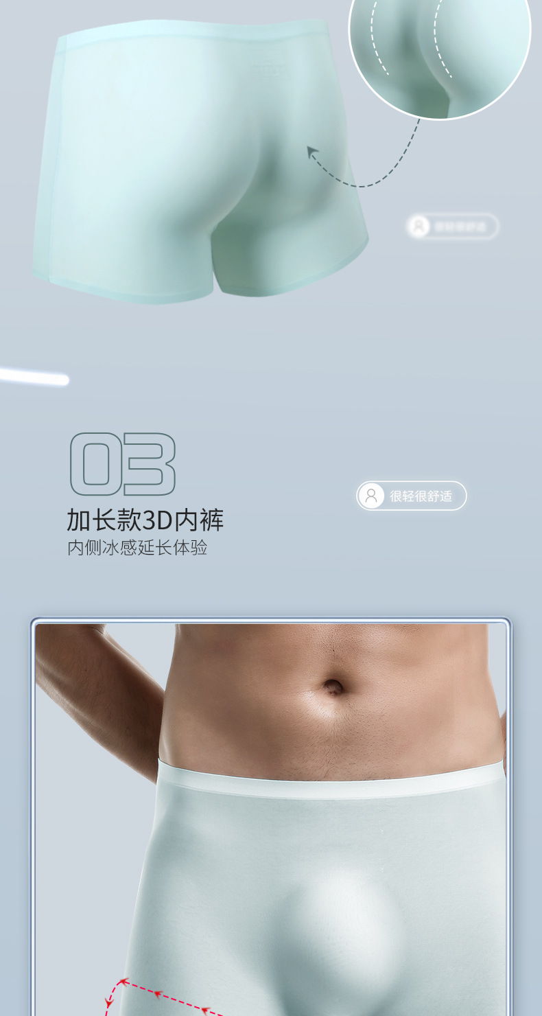 남자 속옷 남자의 3D 스탬핑 금형 아이스 실크 코너 바지 원활한 얇은 복서 바지 연장 스포츠 여름 짧은 바지 헤드