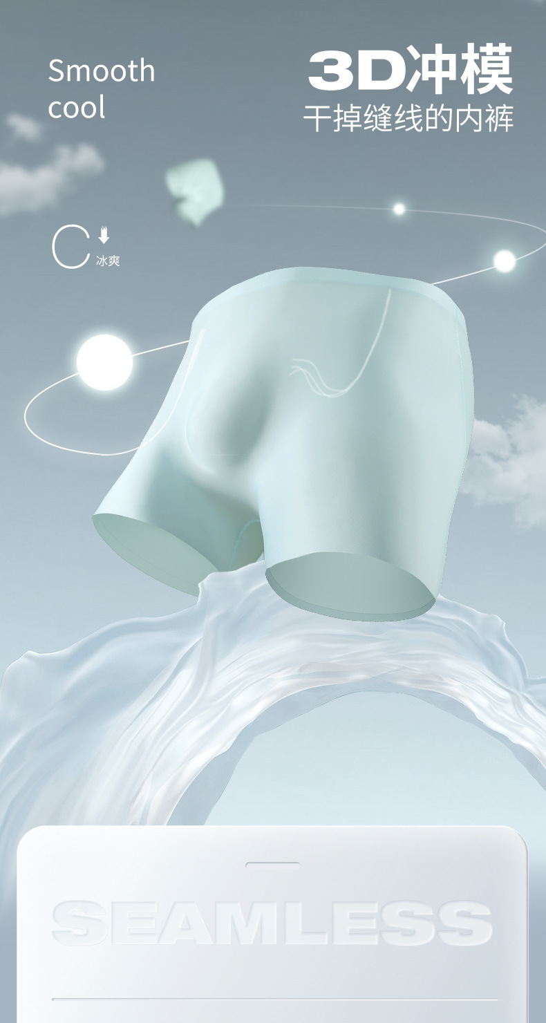 남자 속옷 남자의 3D 스탬핑 금형 아이스 실크 코너 바지 원활한 얇은 복서 바지 연장 스포츠 여름 짧은 바지 헤드스토어 가기