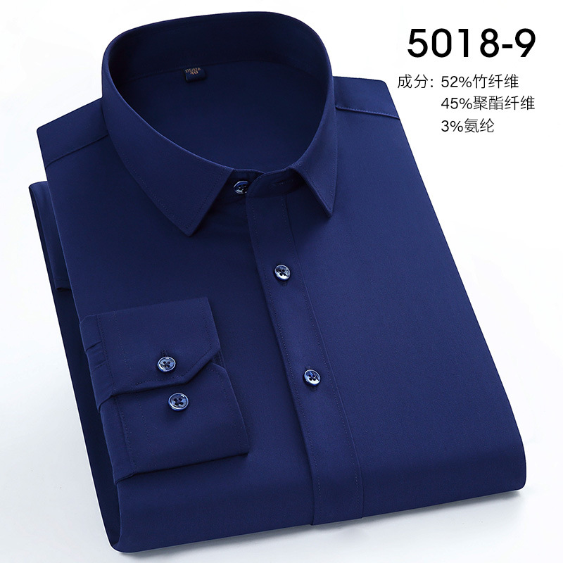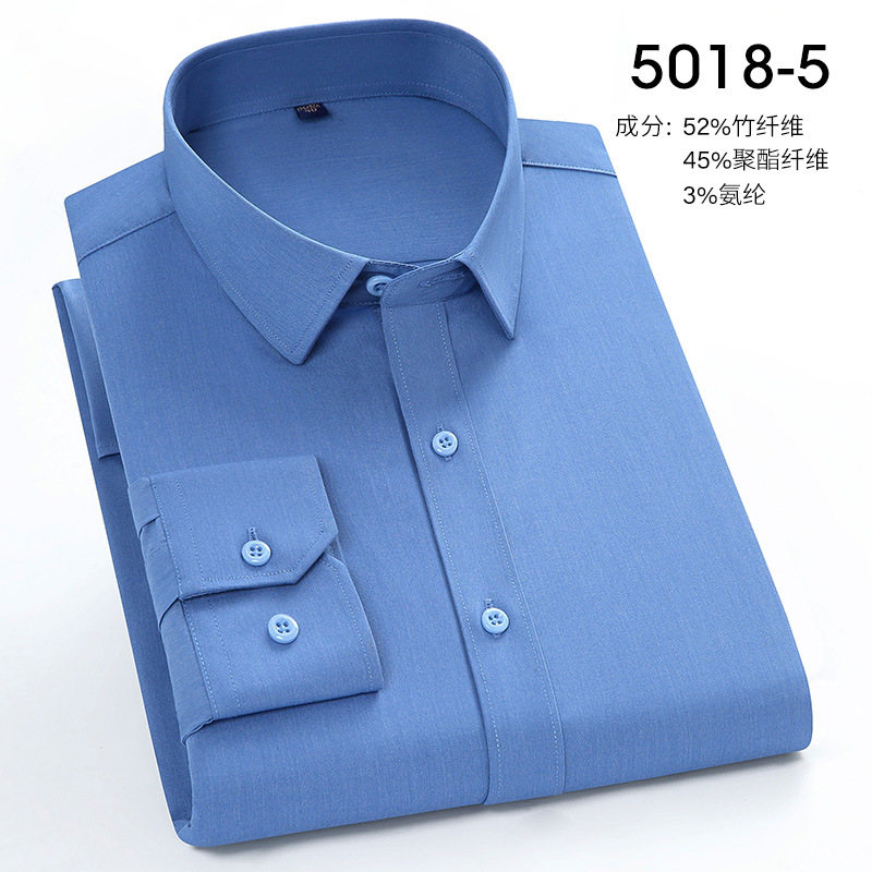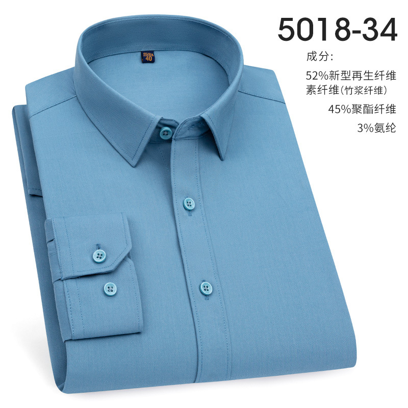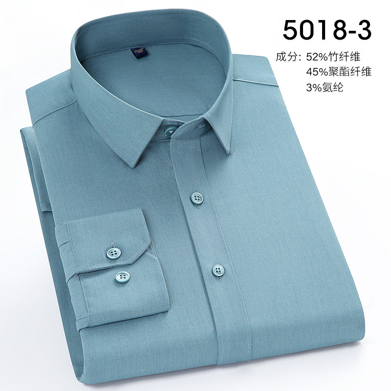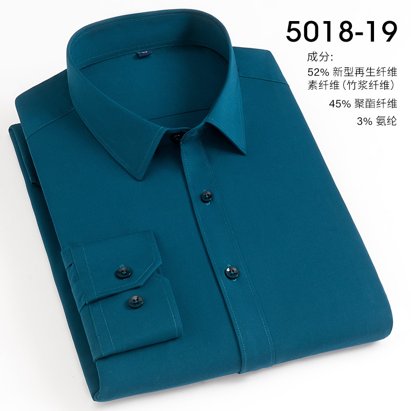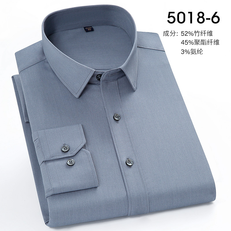 탄성 대나무 섬유 긴팔 남성 셔츠 봄과 여름 통기성 남성 비즈니스 캐주얼 솔리드 컬러 슬림 남성 드레스 셔츠