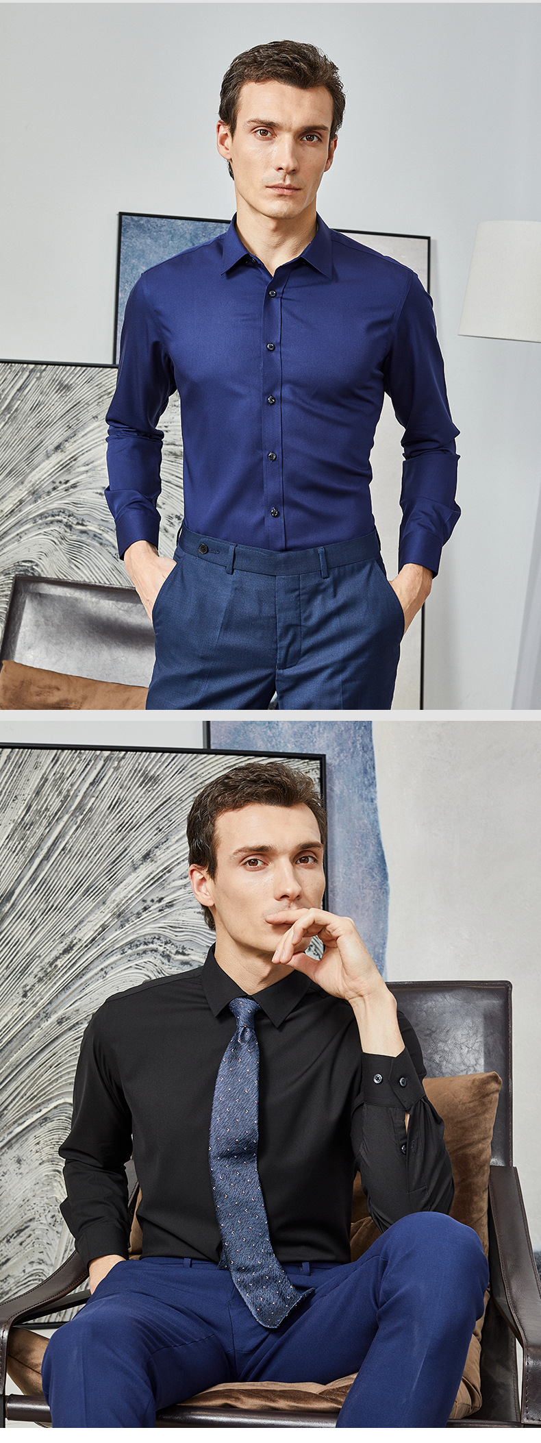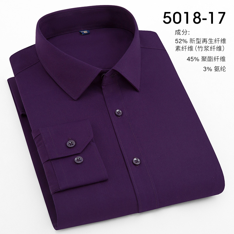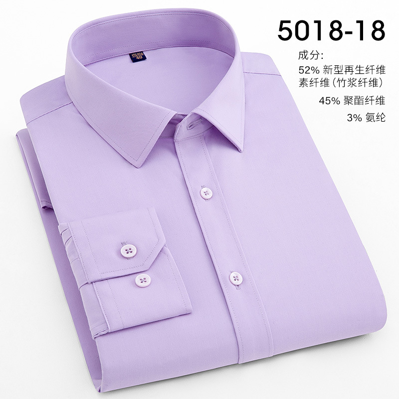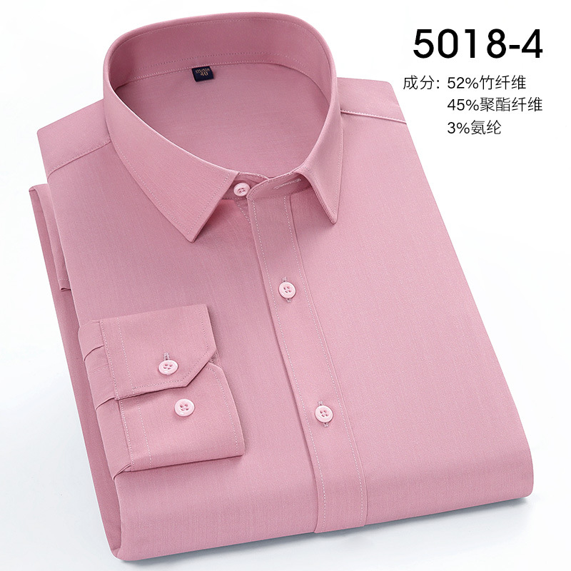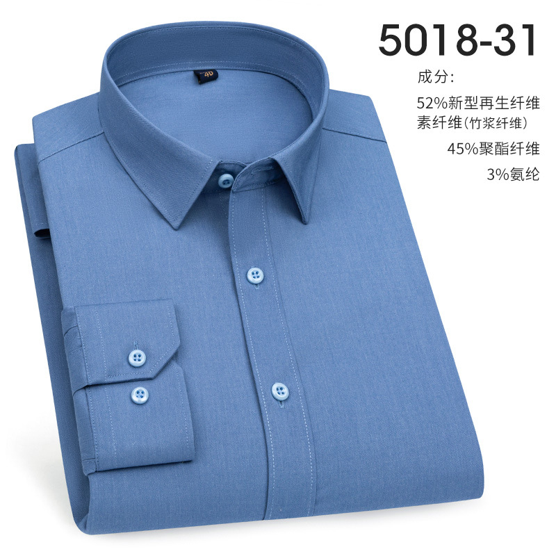 탄성 대나무 섬유 긴팔 남성 셔츠 봄과 여름 통기성 남성 비즈니스 캐주얼 솔리드 컬러 슬림 남성 드레스 셔츠