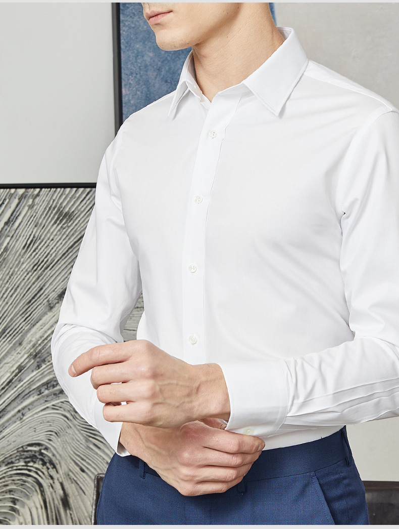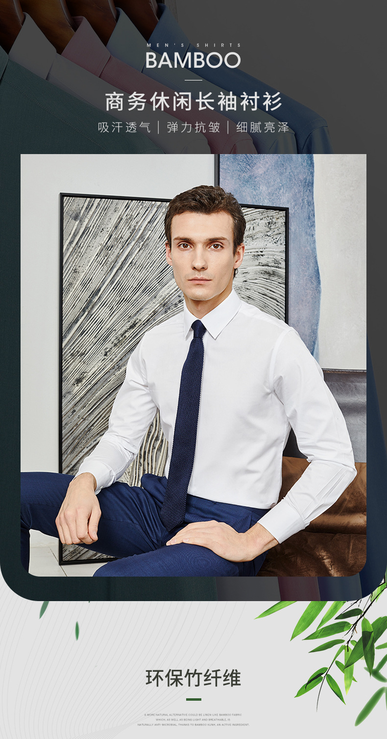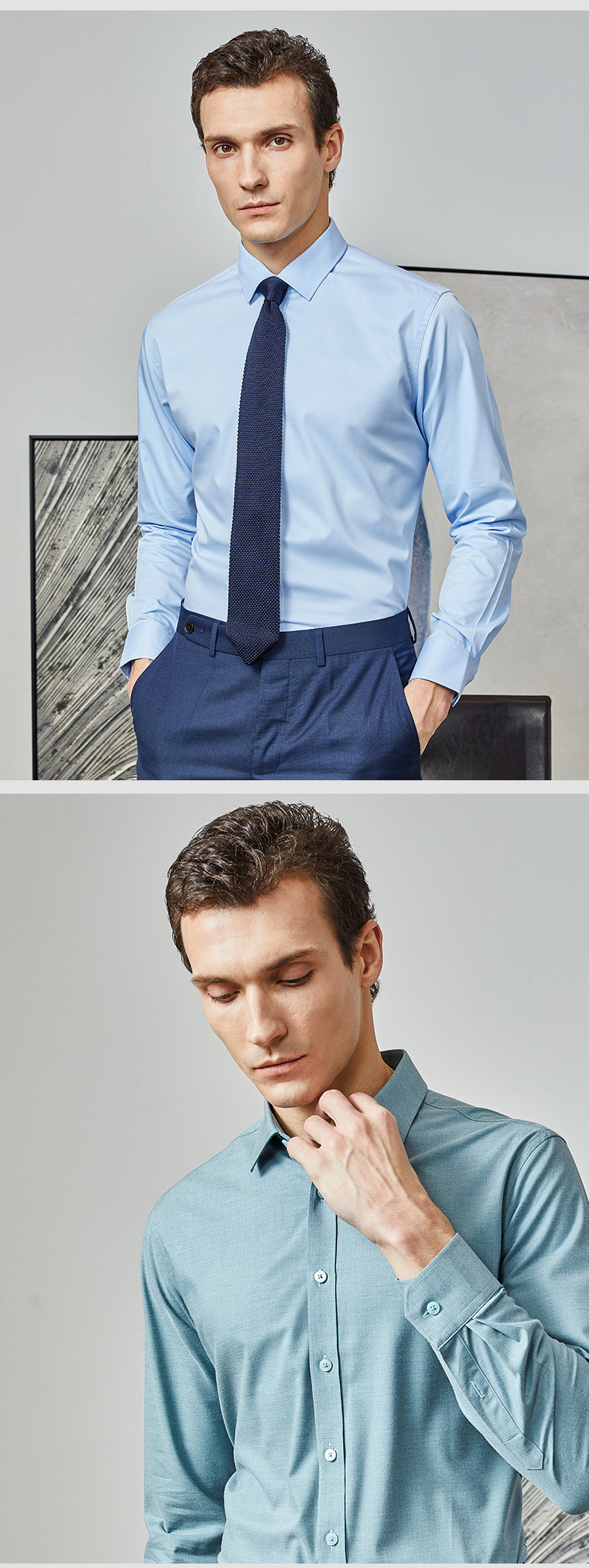 탄성 대나무 섬유 긴팔 남성 셔츠 봄과 여름 통기성 남성 비즈니스 캐주얼 솔리드 컬러 슬림 남성 드레스 셔츠스토어 가기