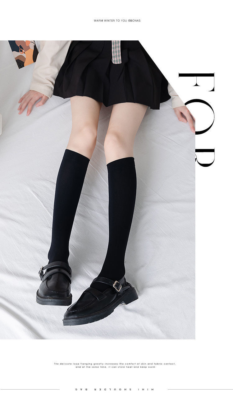 봄과 여름 여성용 하프 마이크로 압력 자외선 차단제 무릎 위 스타킹 JK 블랙 양말 벨벳 송아지 양말
