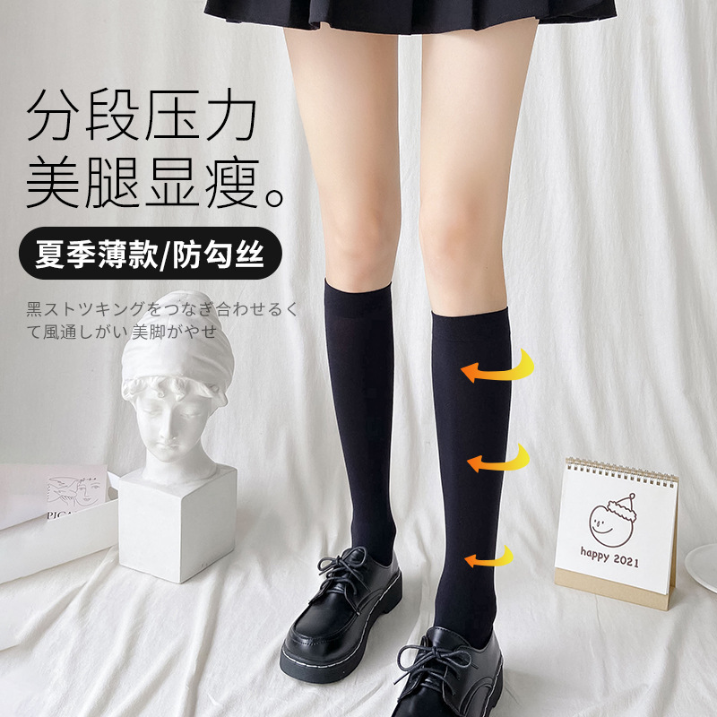 봄과 여름 여성용 하프 마이크로 압력 자외선 차단제 무릎 위 스타킹 JK 블랙 양말 벨벳 송아지 양말스토어 가기
