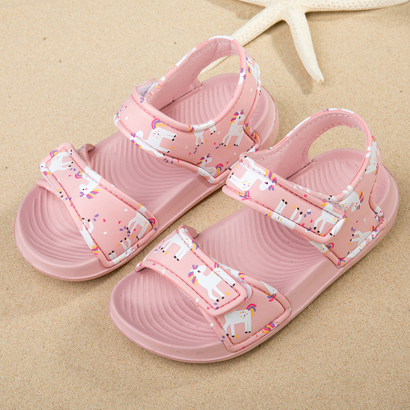 2023 새로운 EVA 어린이 벨크로 샌들 소년과 소녀를위한 귀여운 만화 미끄럼 방지 겉옷 편안한 샌들