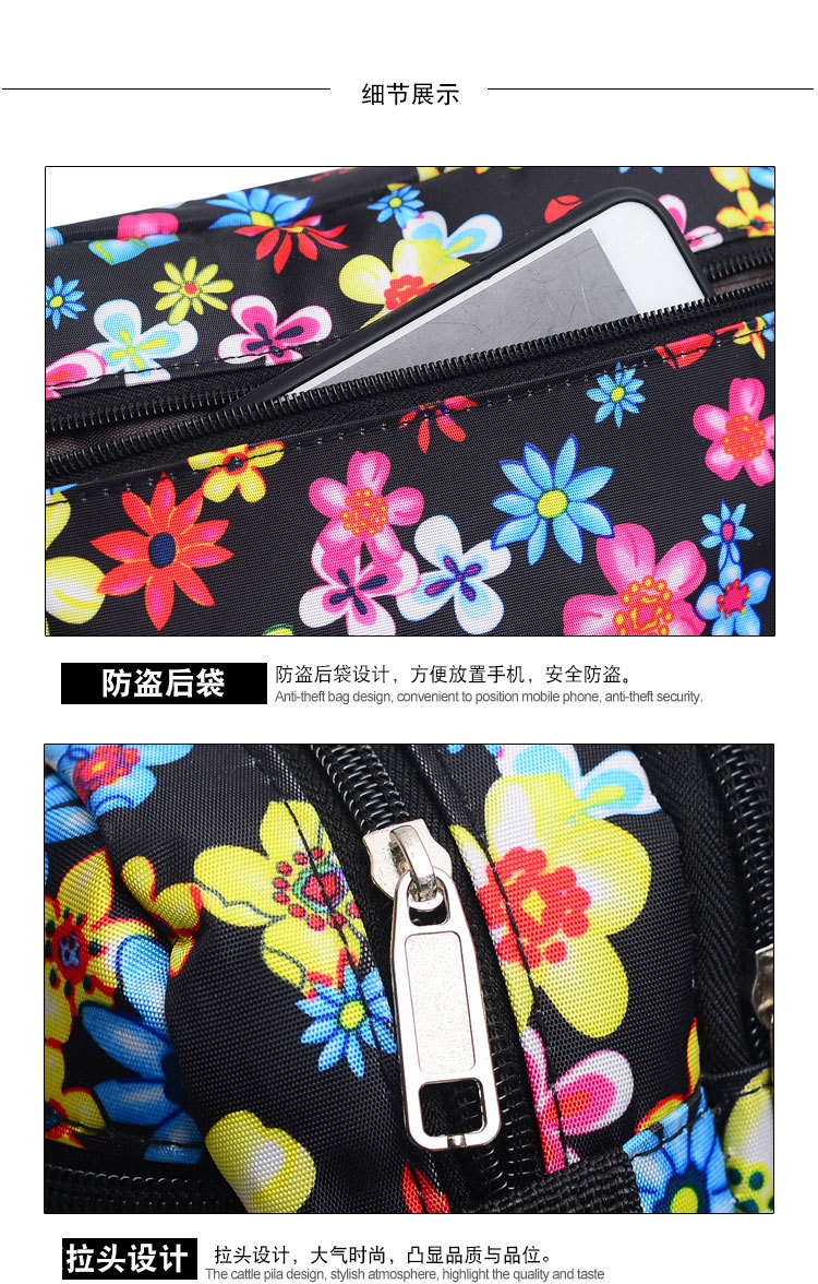 숄더 메신저 백 꽃 천 여성 배낭 옥스포드 천 캐주얼 패션 스포츠 대외 무역 여성 가방 5 지퍼 대형스토어 가기