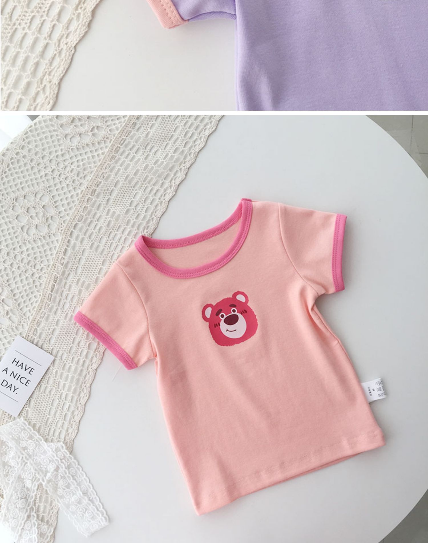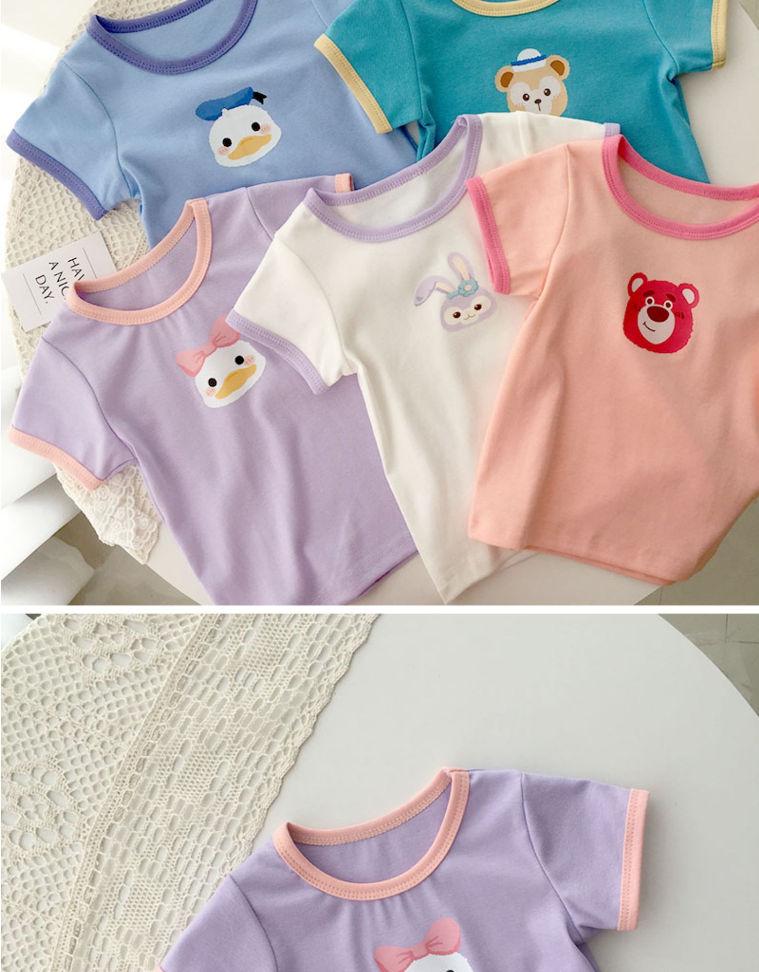 여름 서양 스타일 아기 귀여운 여아 반팔 셔츠 소녀를위한 여름 어린이 티셔츠 어린이 크루넥 반팔 셔츠