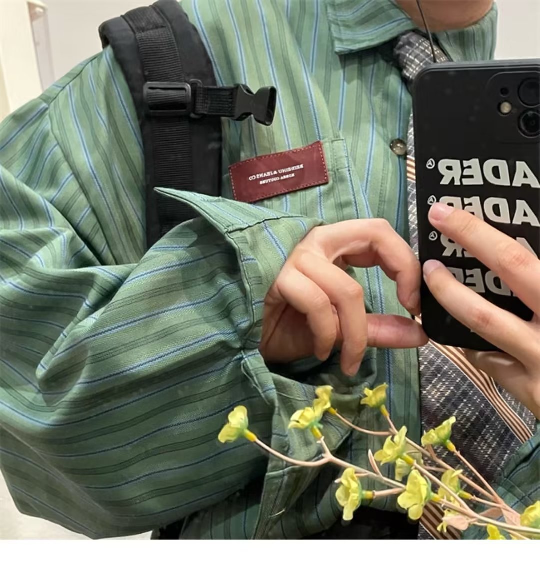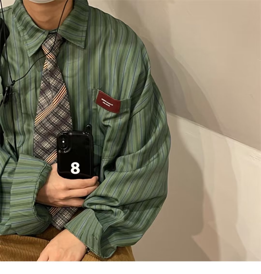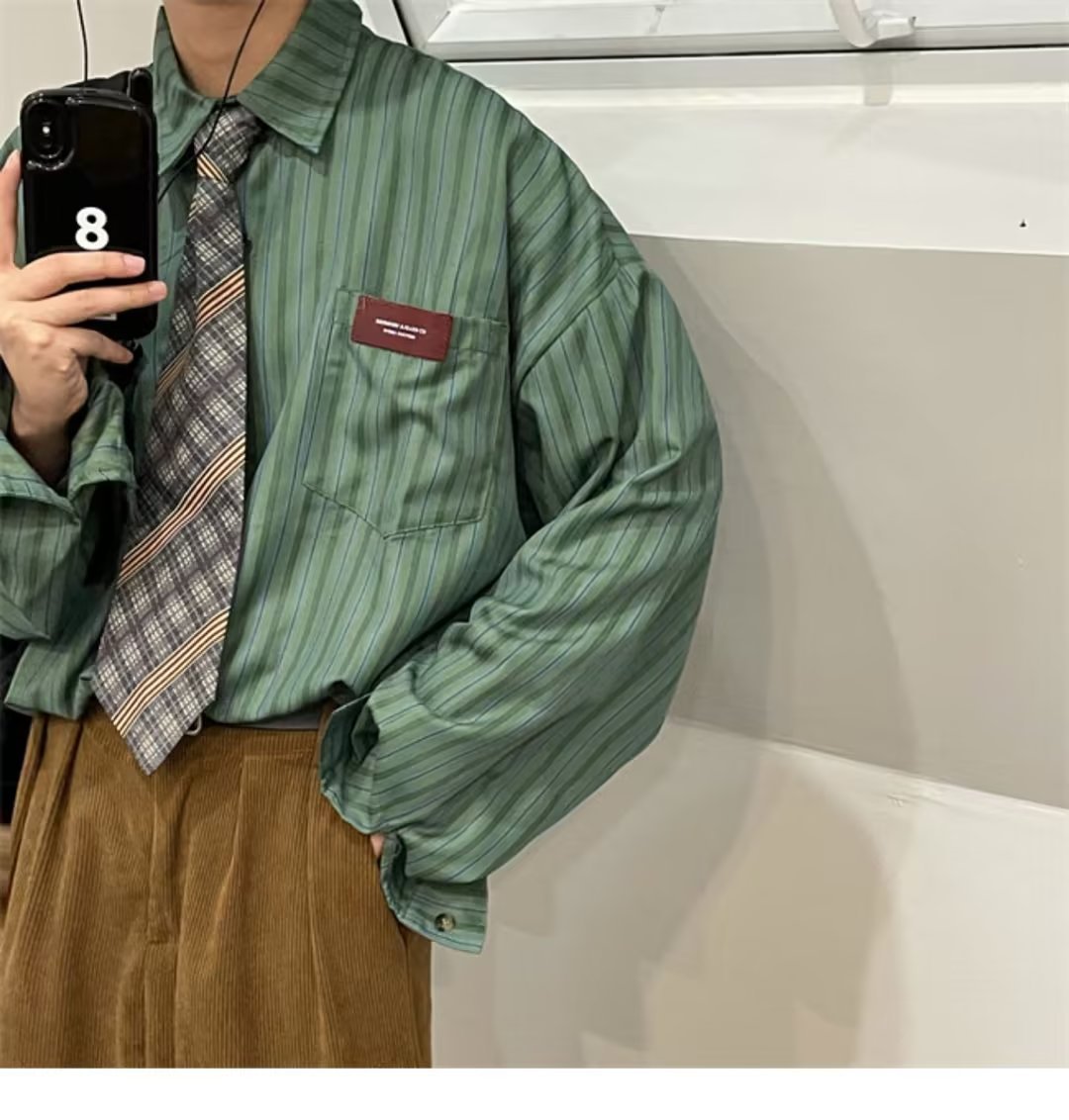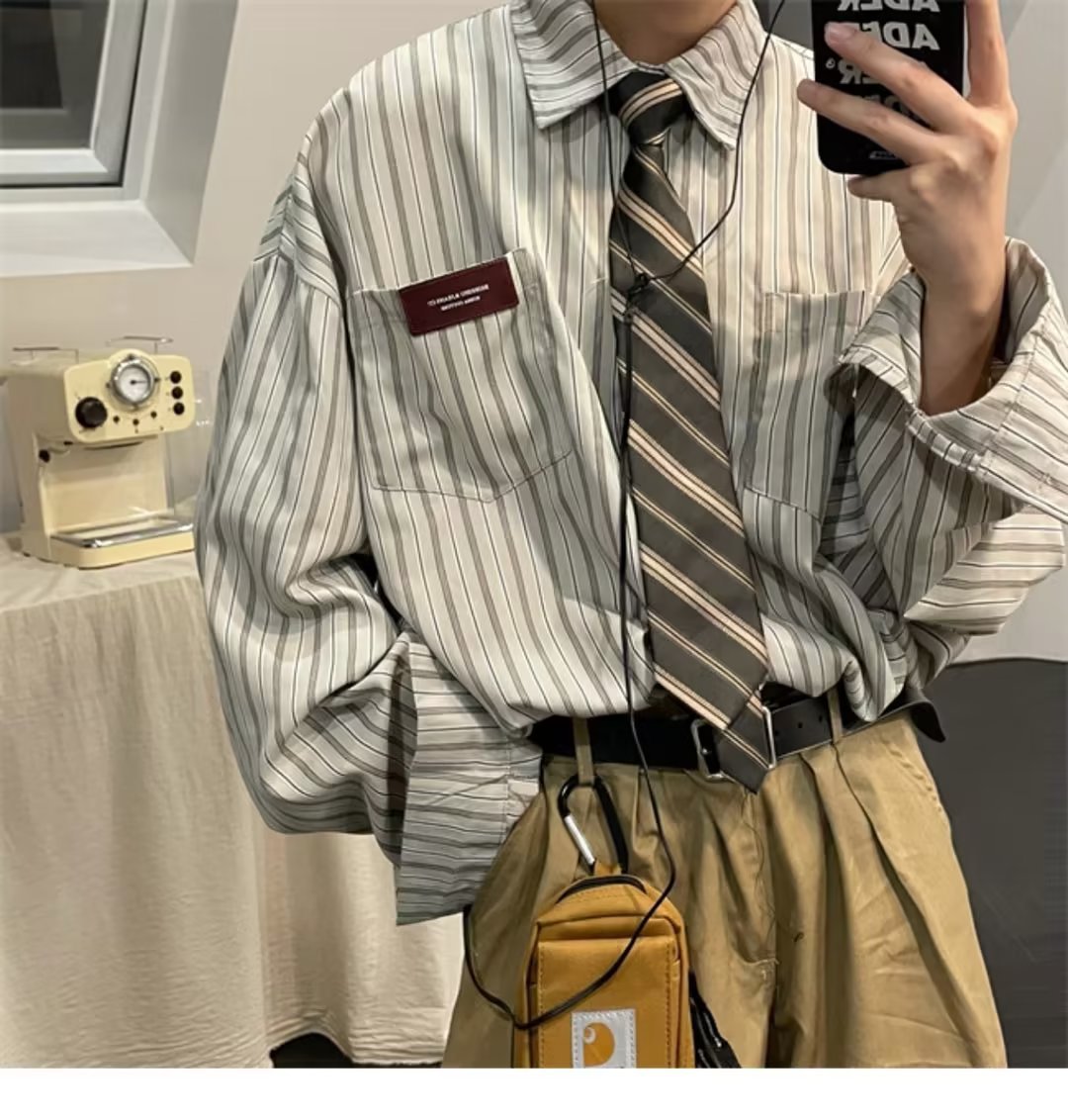 새로운 모든 매치 트렌디 한 긴팔 셔츠 청소년 패션 컬러 매칭 게으른 표준 예술적 심플 봄 일본 남성
