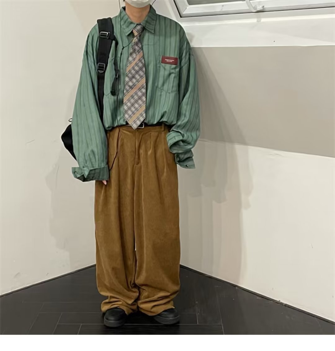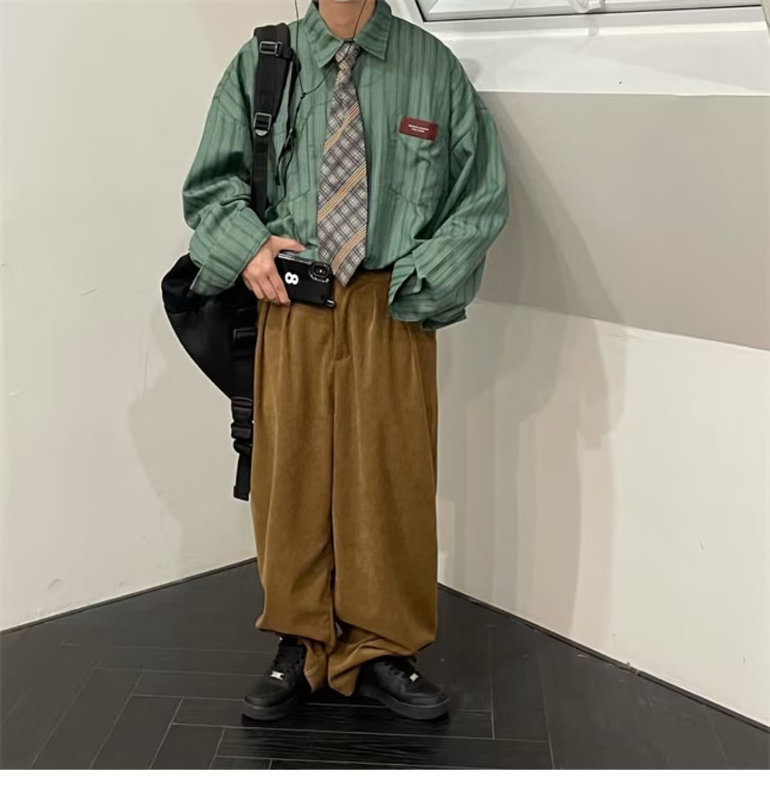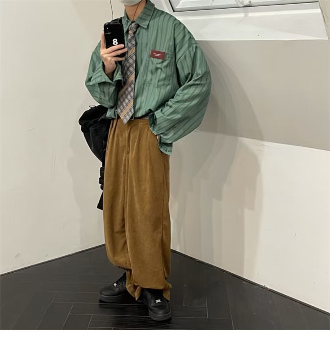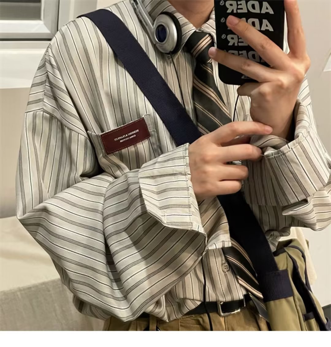 새로운 모든 매치 트렌디 한 긴팔 셔츠 청소년 패션 컬러 매칭 게으른 표준 예술적 심플 봄 일본 남성