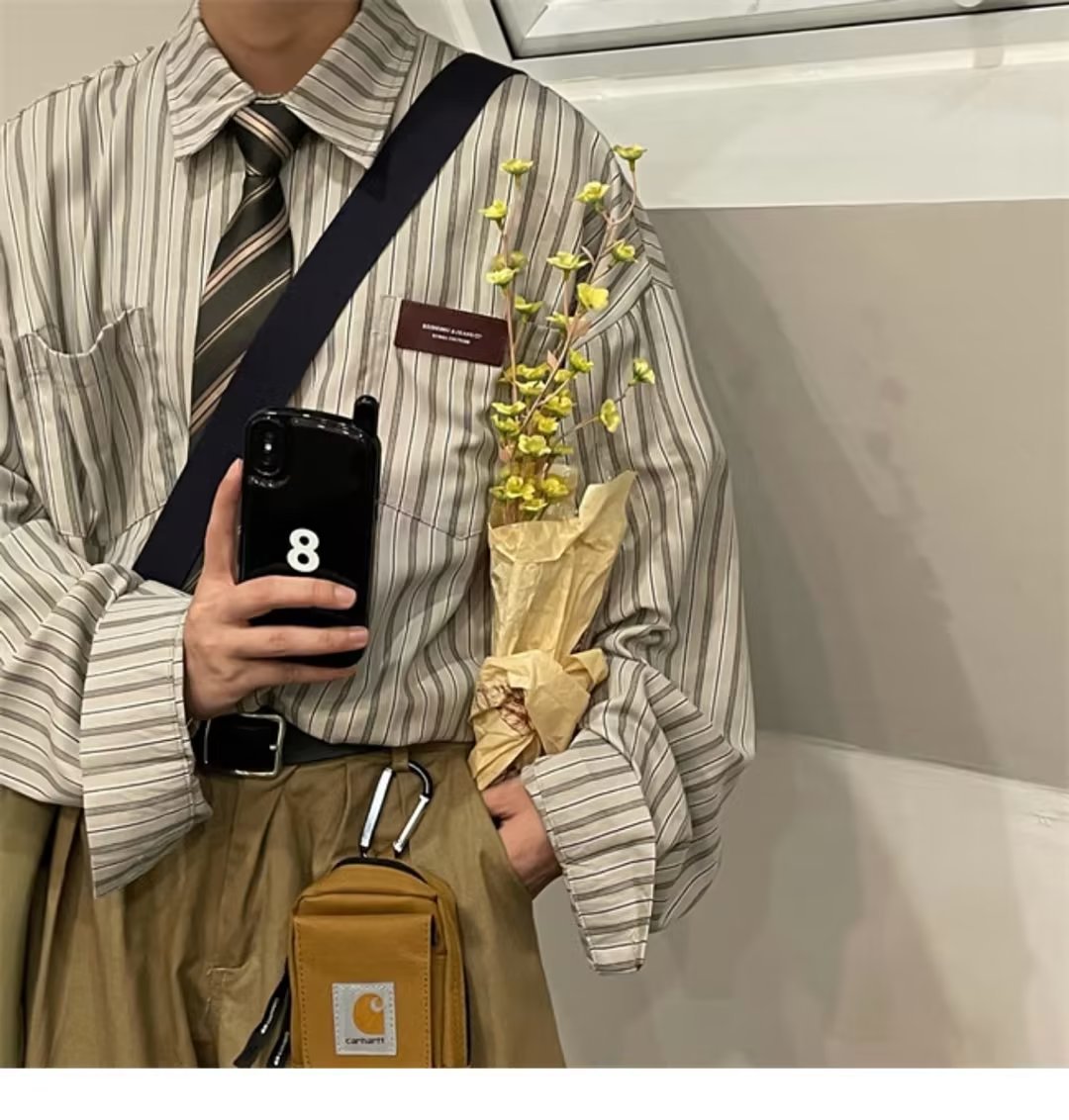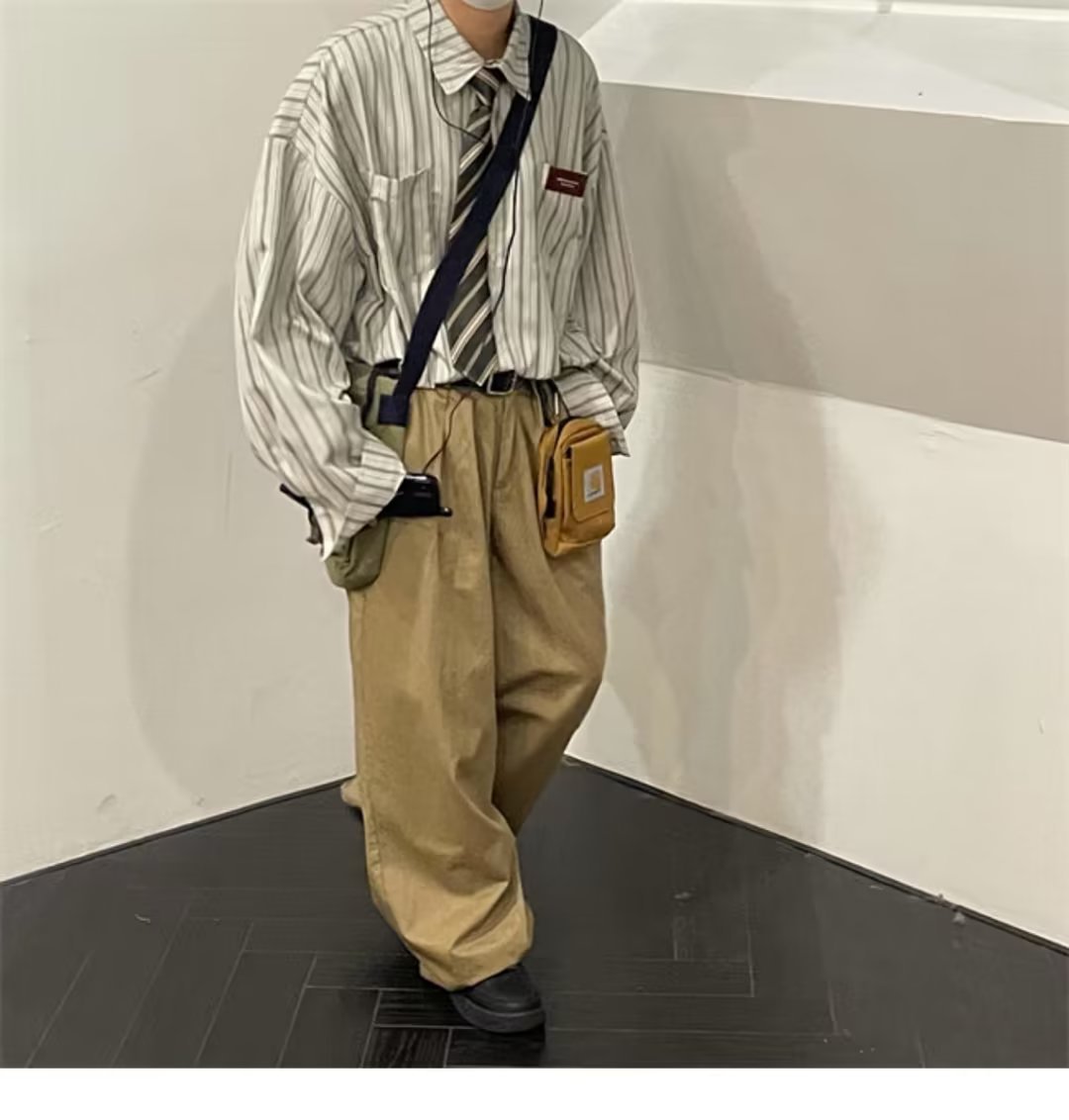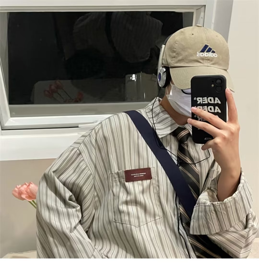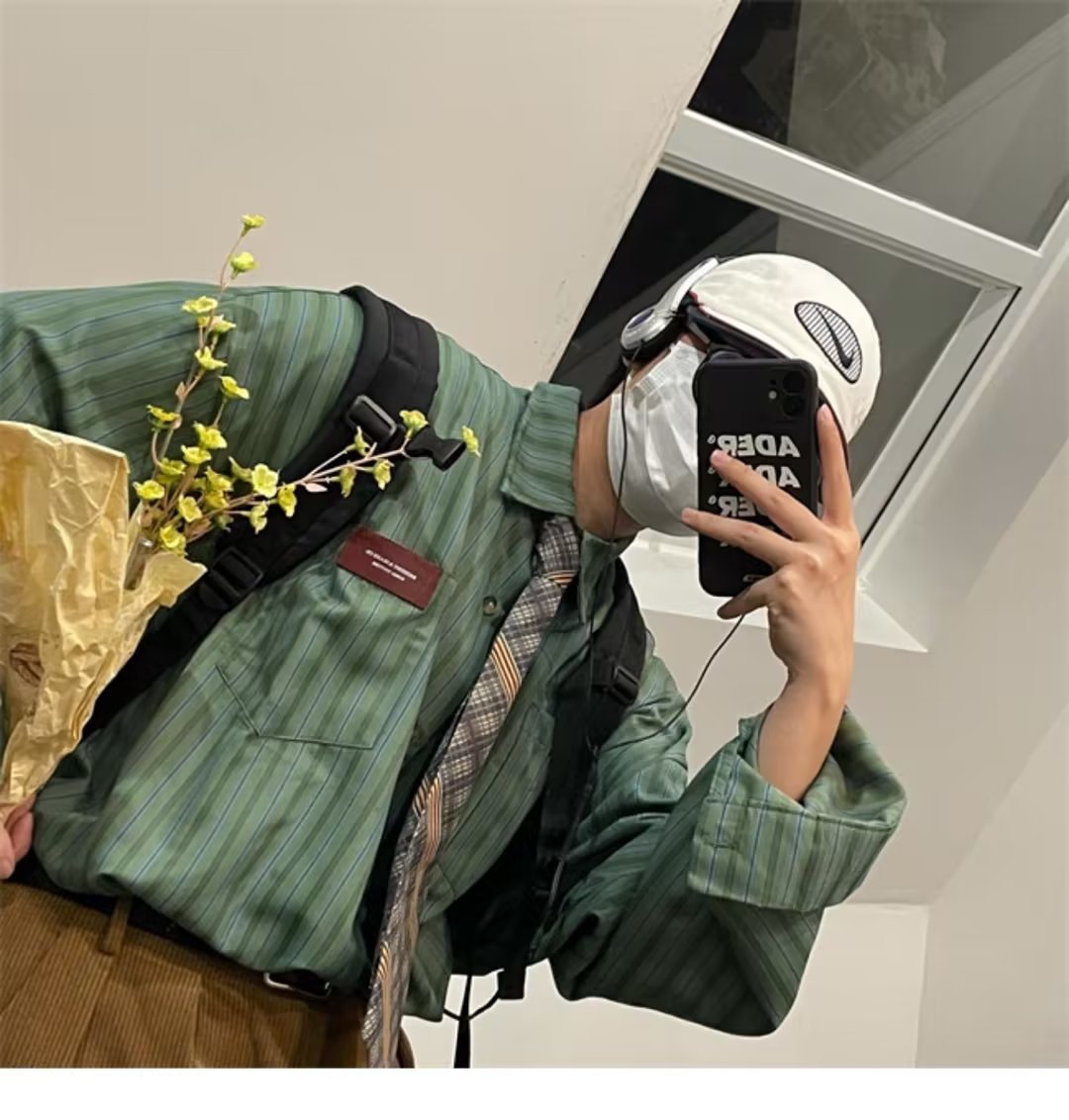새로운 모든 매치 트렌디 한 긴팔 셔츠 청소년 패션 컬러 매칭 게으른 표준 예술적 심플 봄 일본 남성