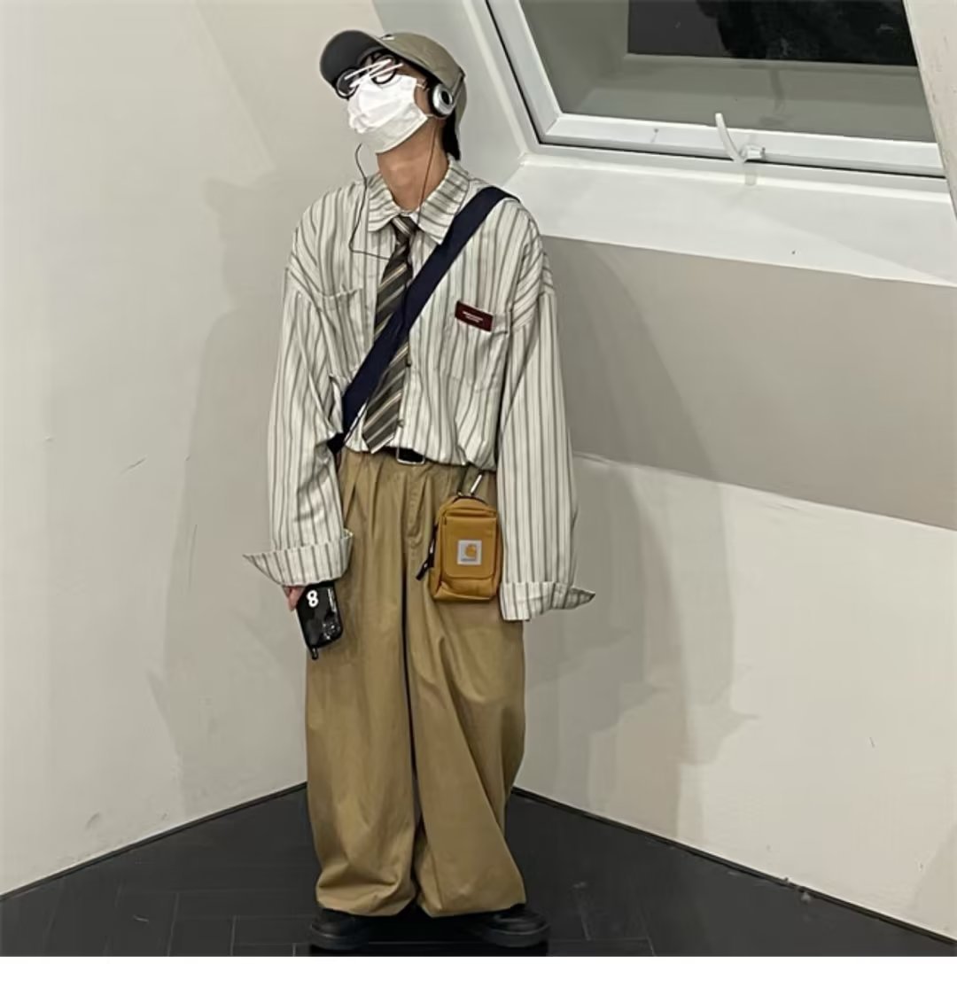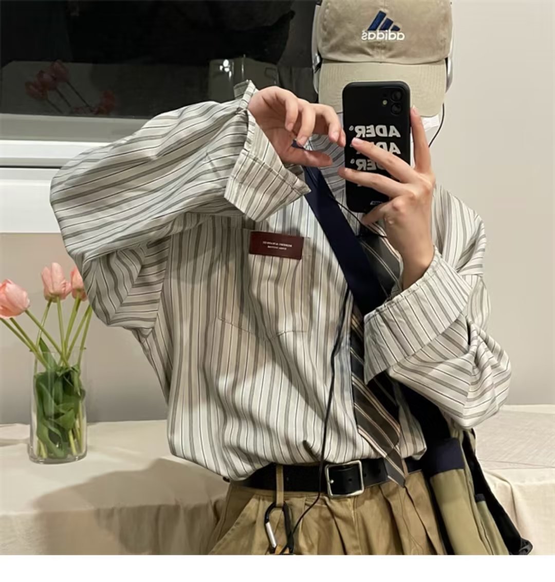 새로운 모든 매치 트렌디 한 긴팔 셔츠 청소년 패션 컬러 매칭 게으른 표준 예술적 심플 봄 일본 남성스토어 가기