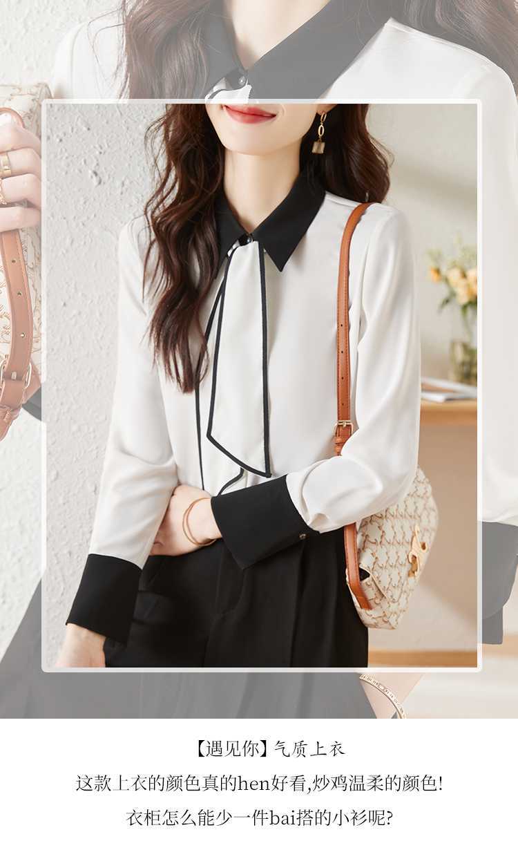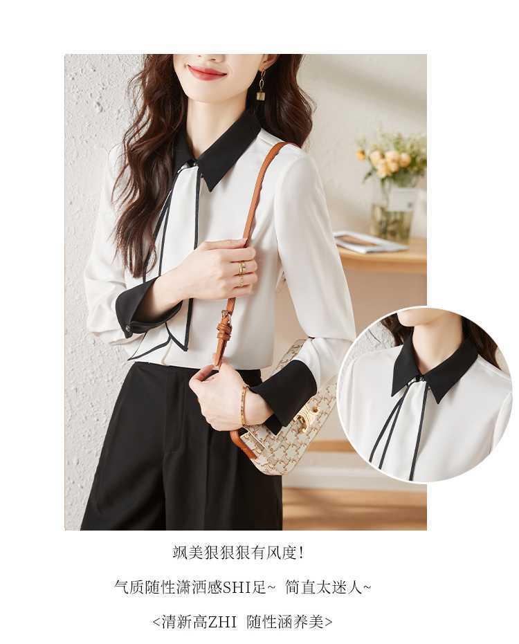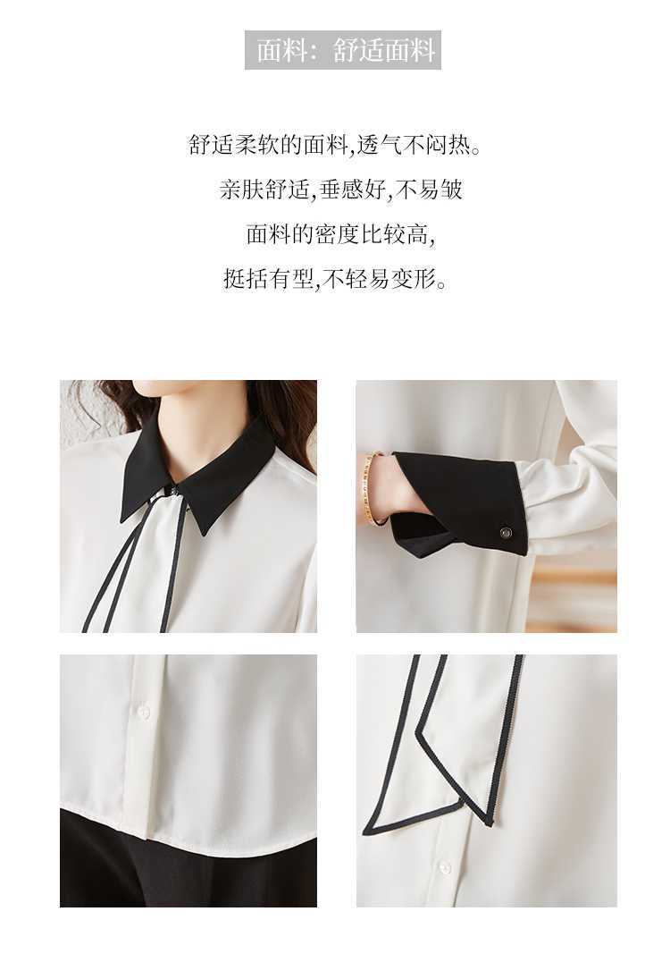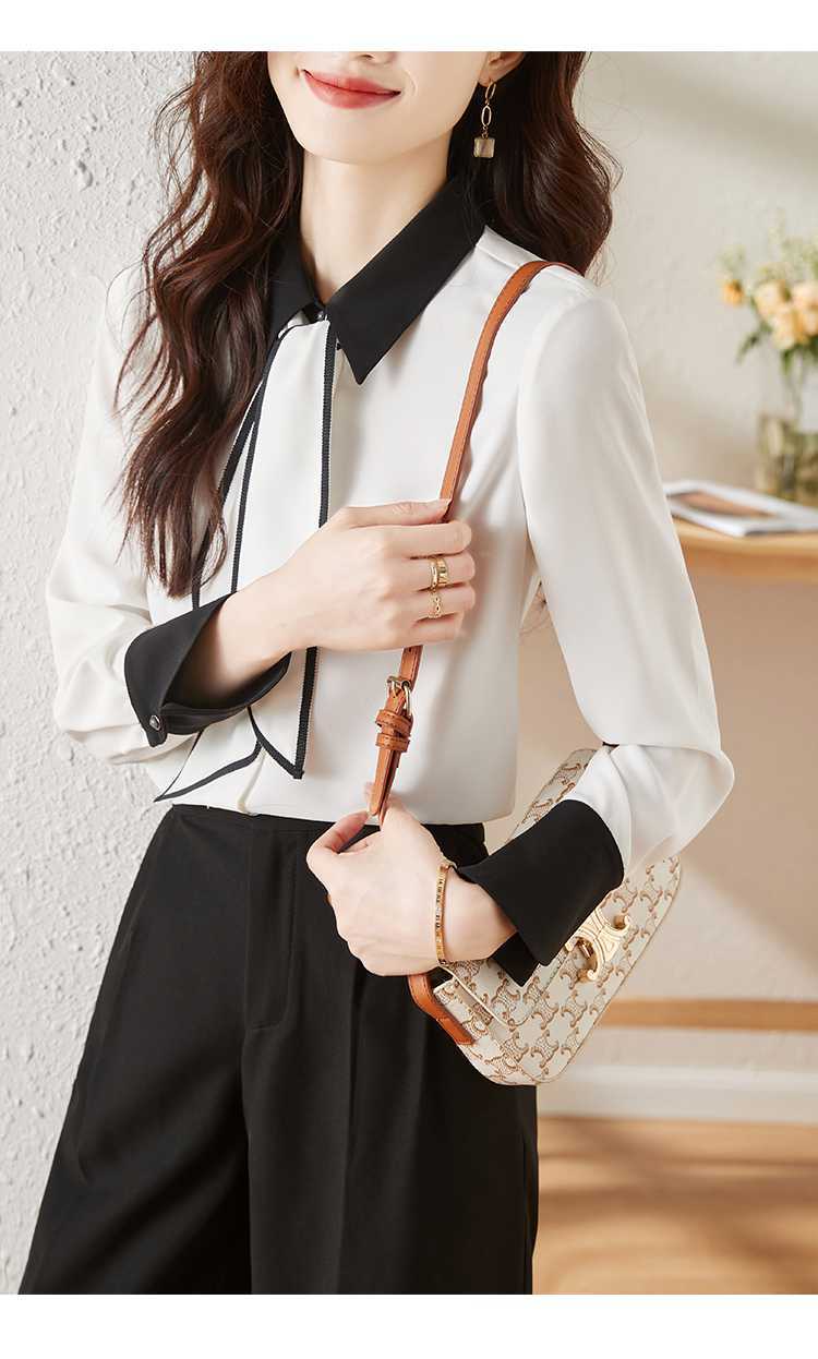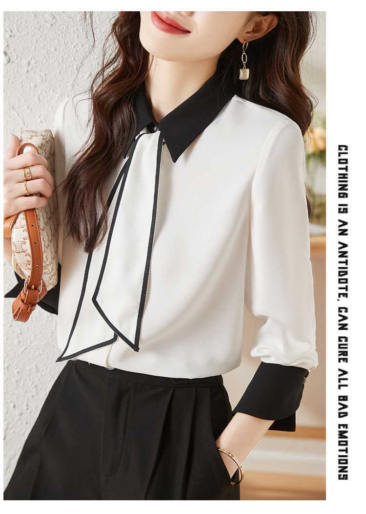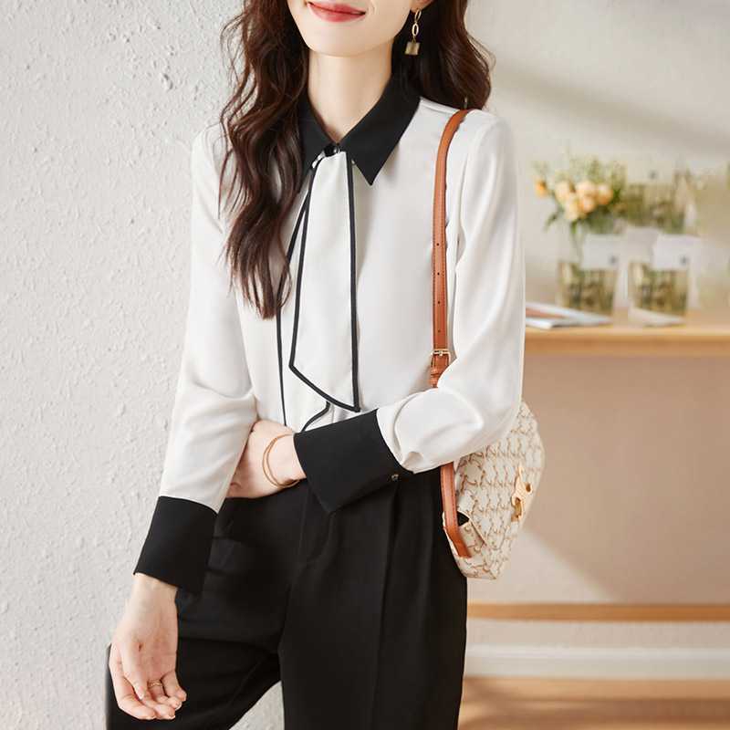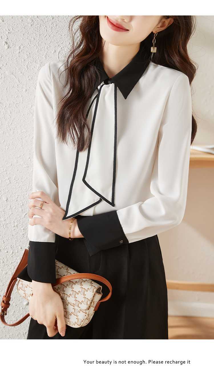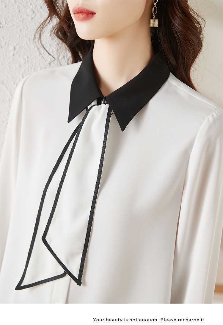 2025 가을 신상 넥타이 달린 여성용 쉬폰 셔츠 디자인 감각 있는 틈새 시장용 리본 화이트 셔츠스토어 가기