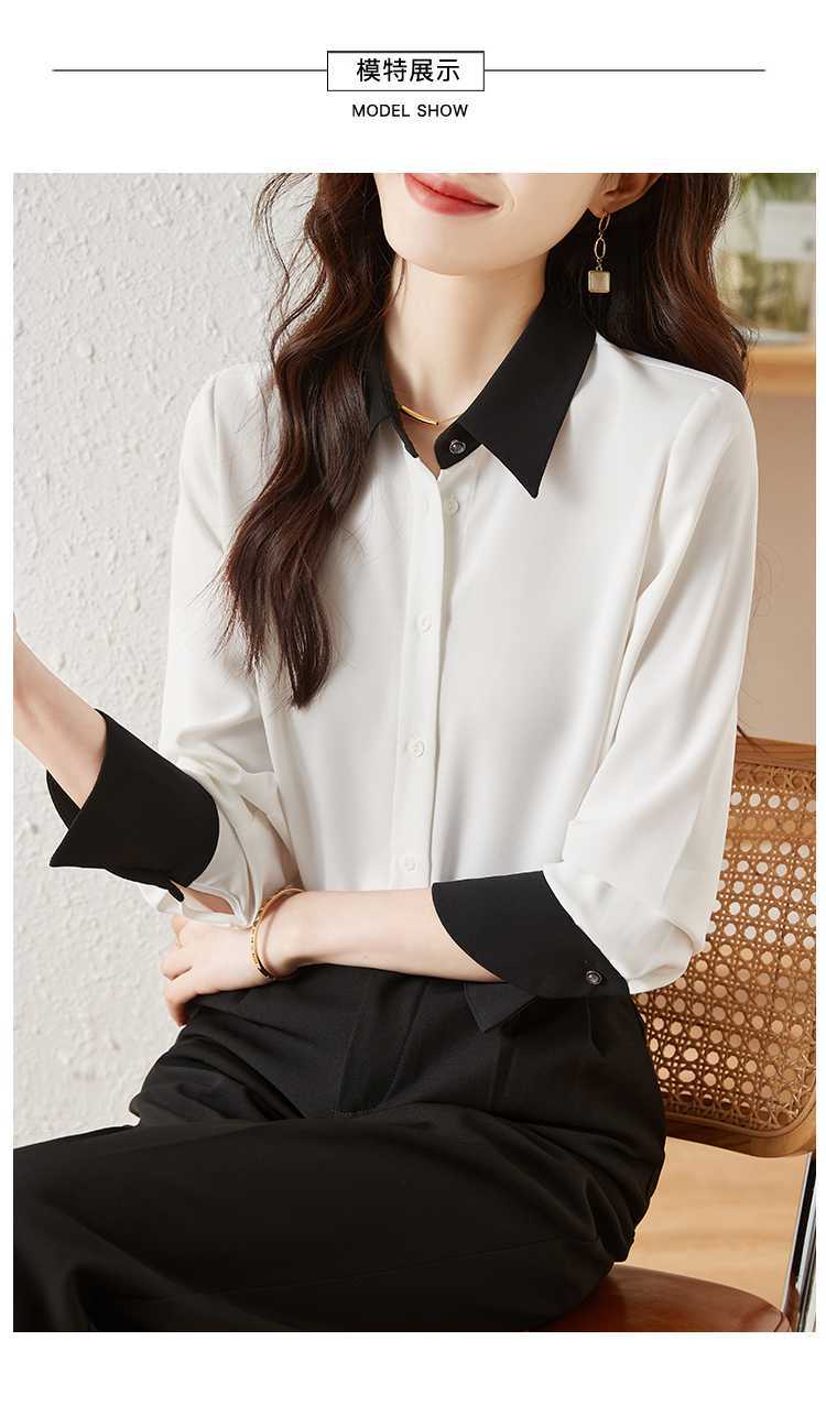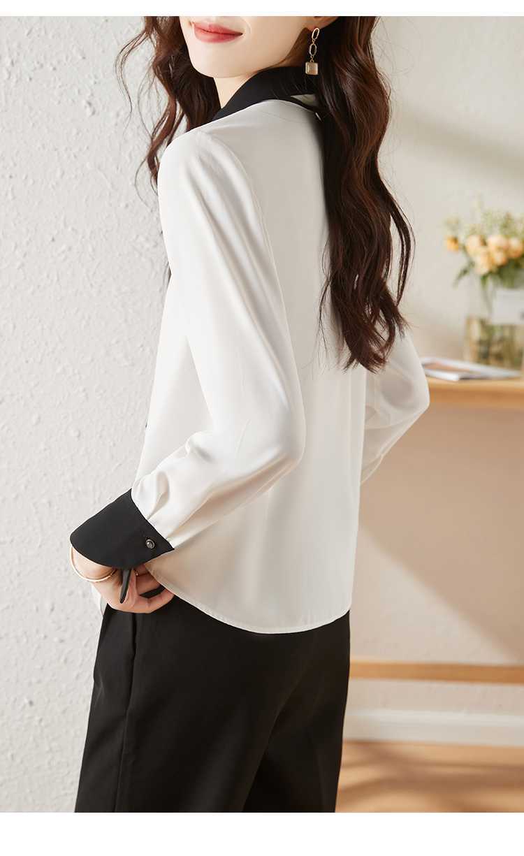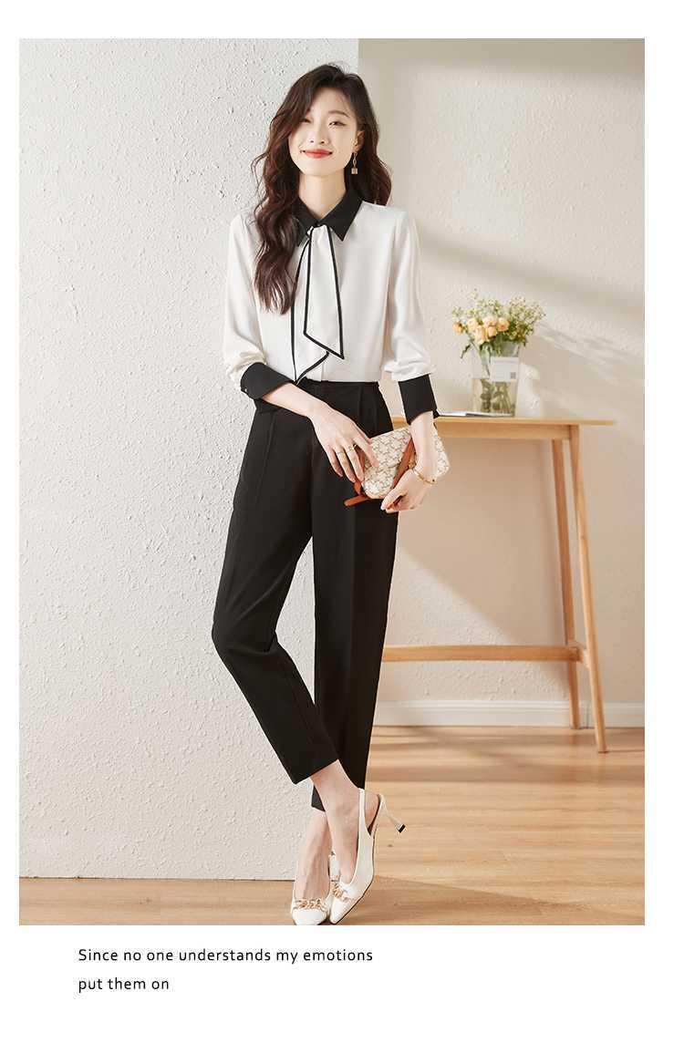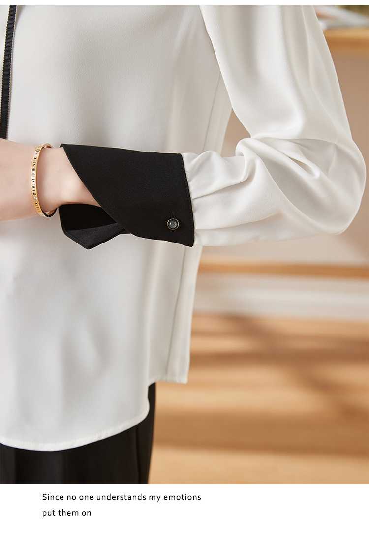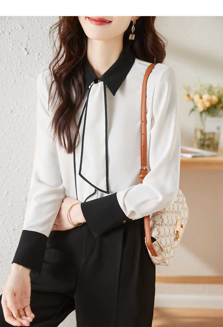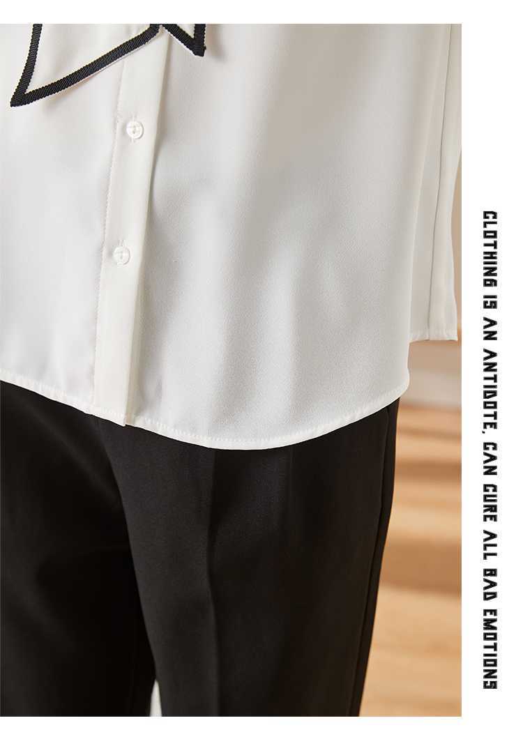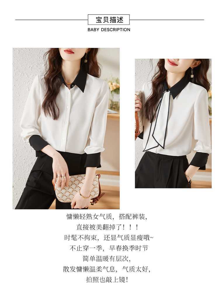 2025 가을 신상 넥타이 달린 여성용 쉬폰 셔츠 디자인 감각 있는 틈새 시장용 리본 화이트 셔츠스토어 가기