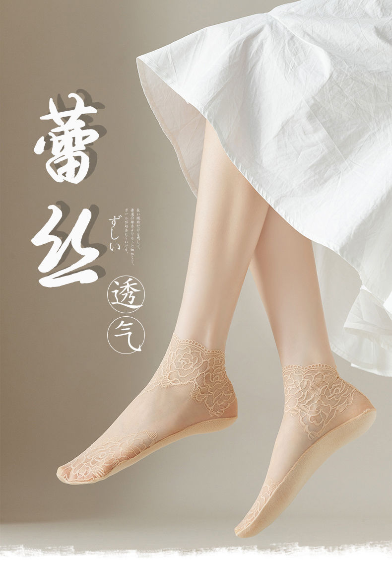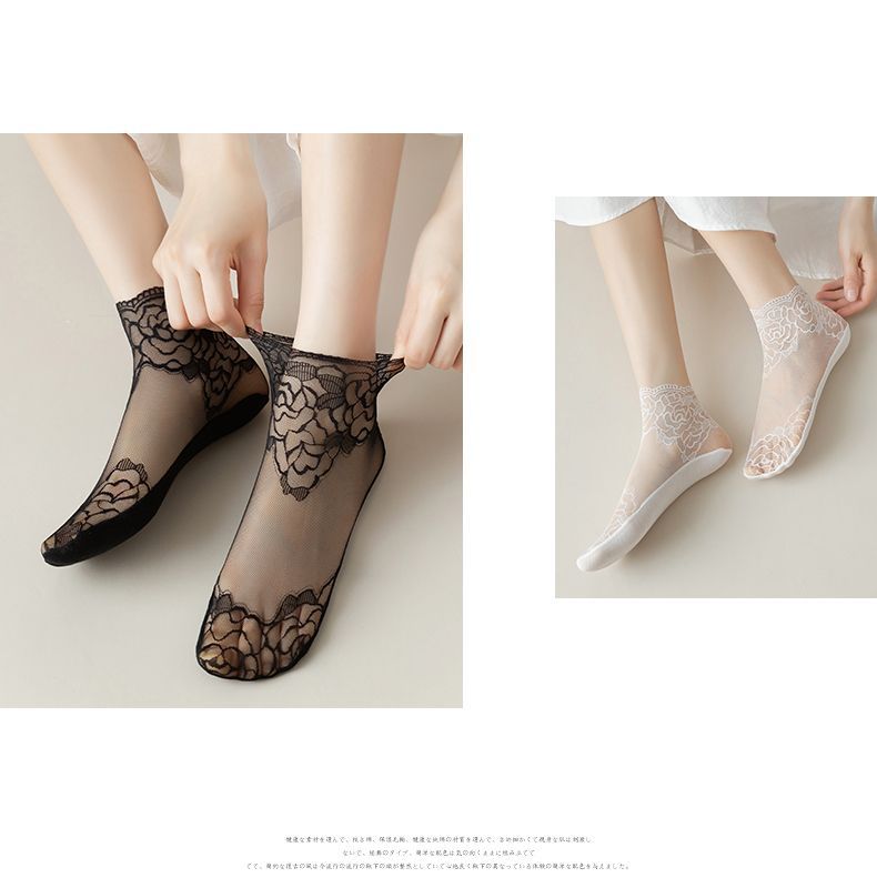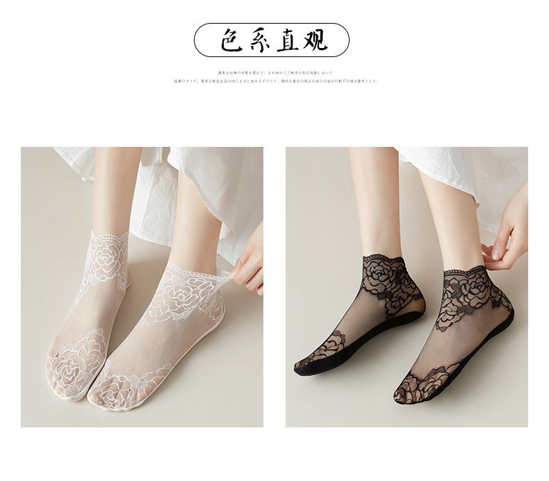 레이스 스타킹 어린이 레이스 스타킹 여름 면화 바닥 in 조수 검은 여름 얇은 짧은 스타킹 통기성 양말