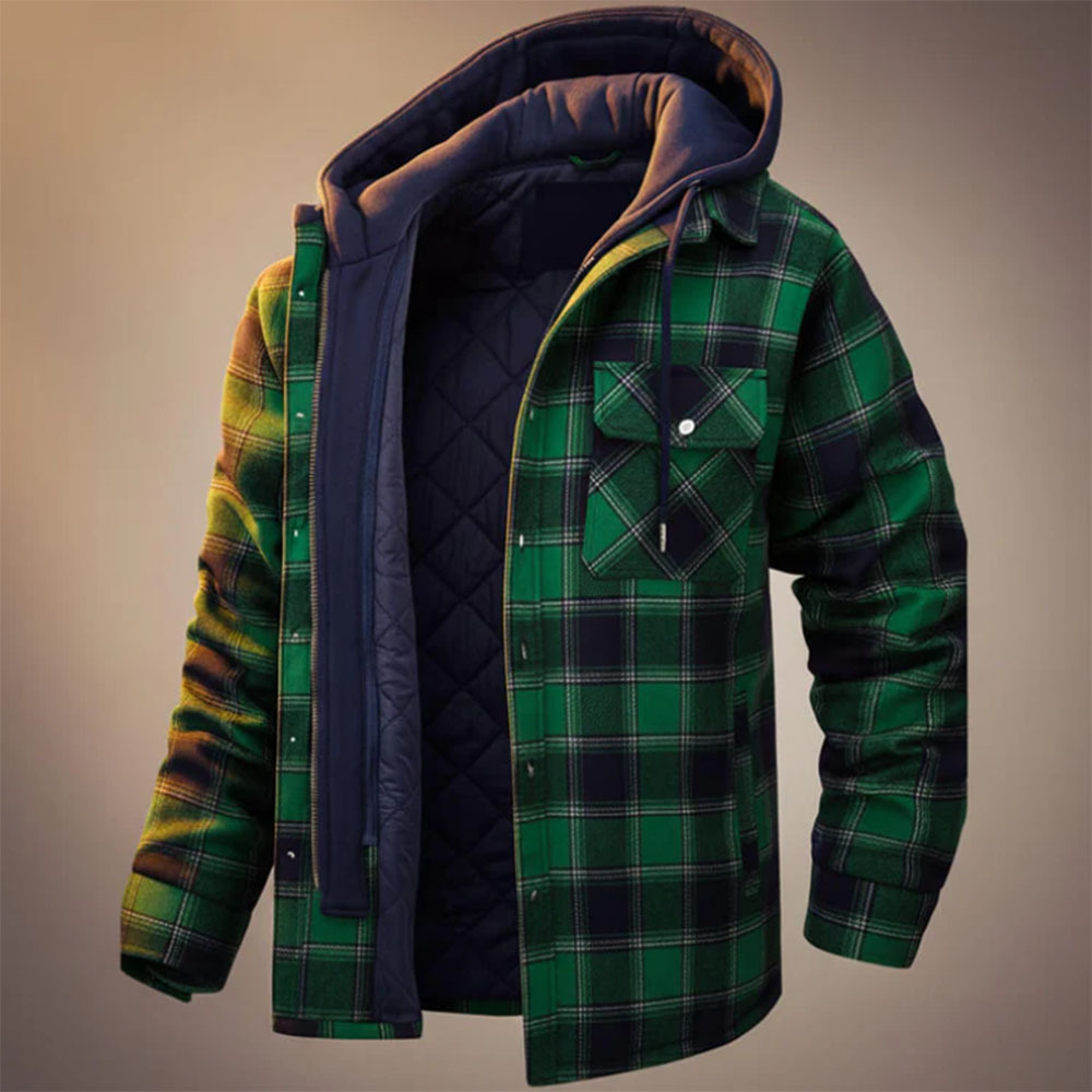 2026 유럽 및 미국 가을 겨울 남성용 재킷, 두꺼운 면 패딩 체크무늬 후드 루즈핏 코트, 연예인 스타일 고급 캐주얼스토어 가기