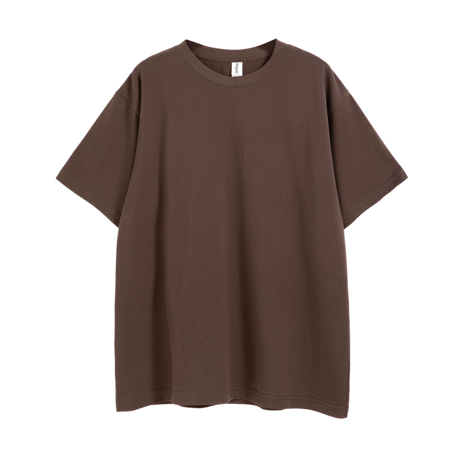 260g 32 카운트 더블 원사 순수 코튼 느슨한 유럽 사이즈 반팔 티셔츠 남성용 헤비 대형 레트로 카키색 바닥 셔츠스토어 가기