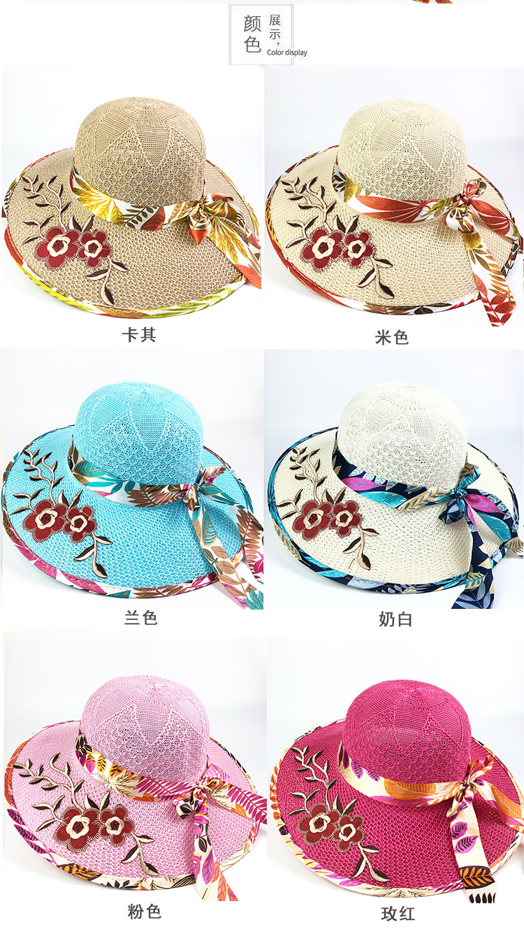 밀짚모자 여성 여름 태양 모자 한국 패션 해변 선 스크린 챙 차양 UV 비치 모자 도매