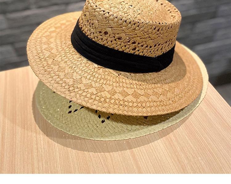 • 밀짚 돔 중공 카키 블랙 벨트