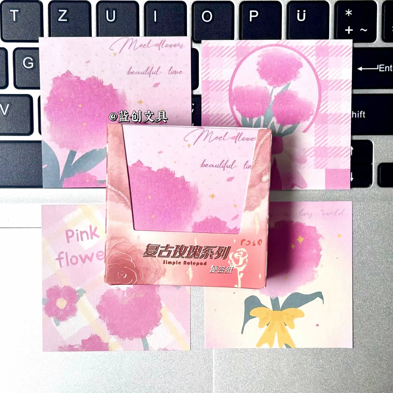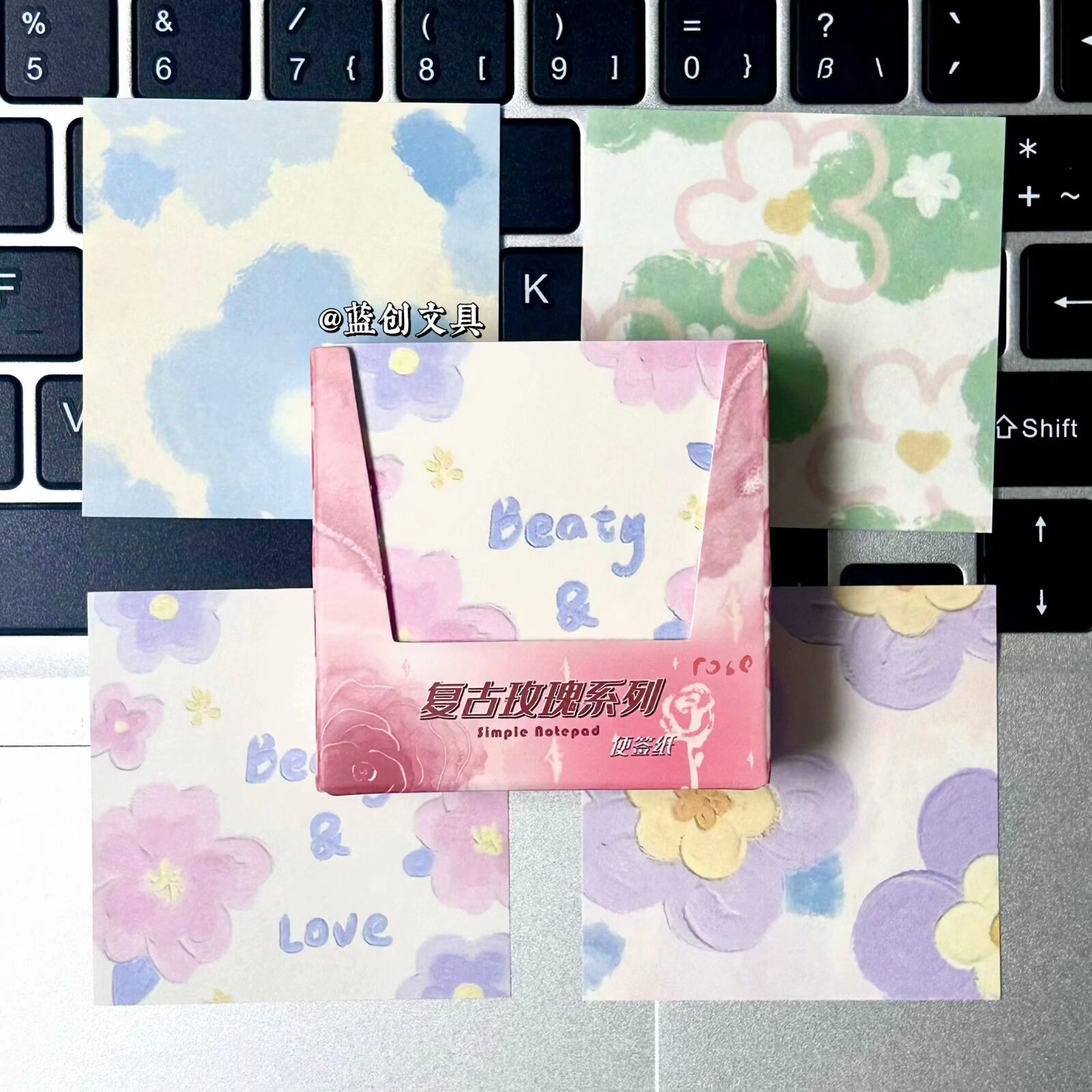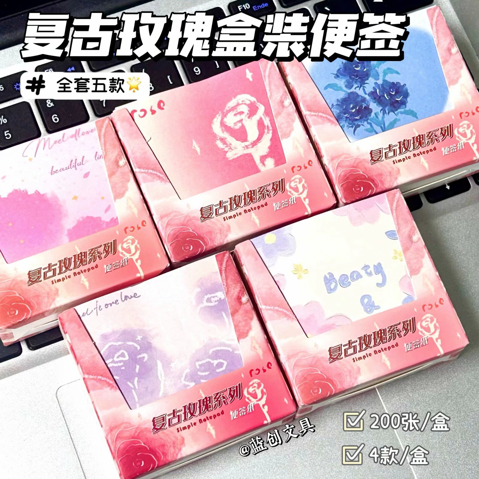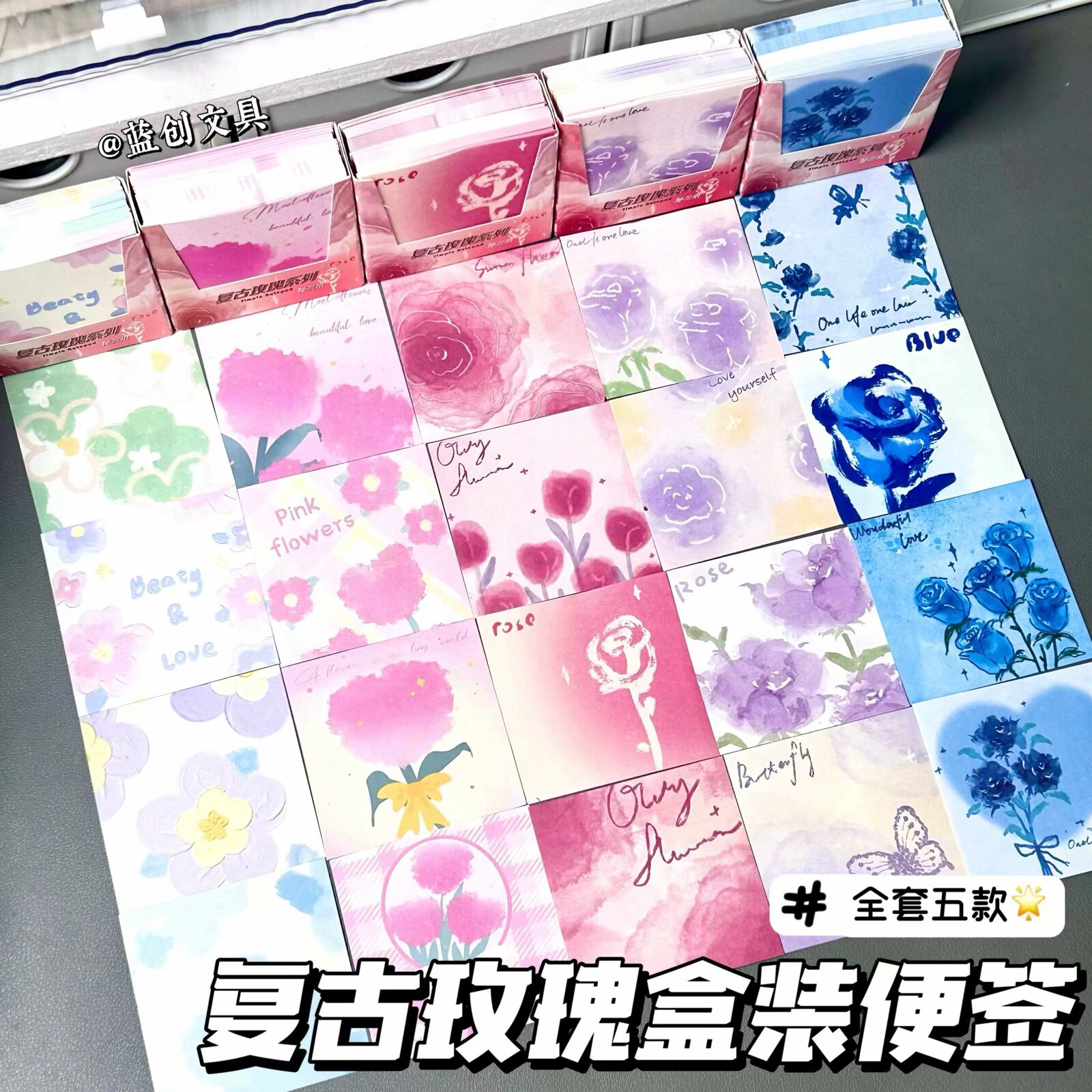 재고 도매 복고풍 장미 학생 창조적 인 소녀 심장 꽃 손 계정 소재 휴대용 박스 노트 종이스토어 가기