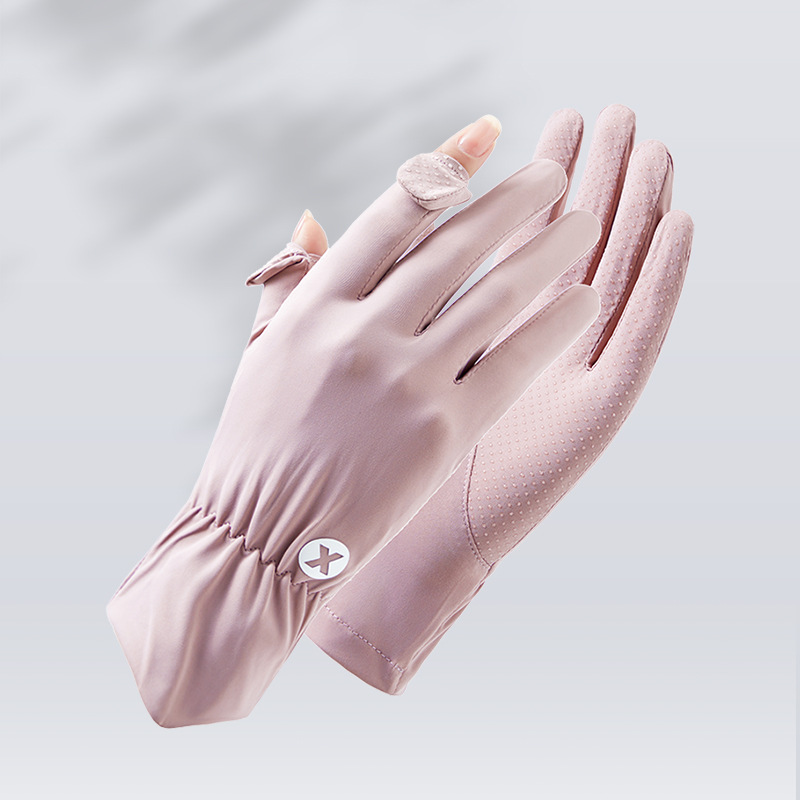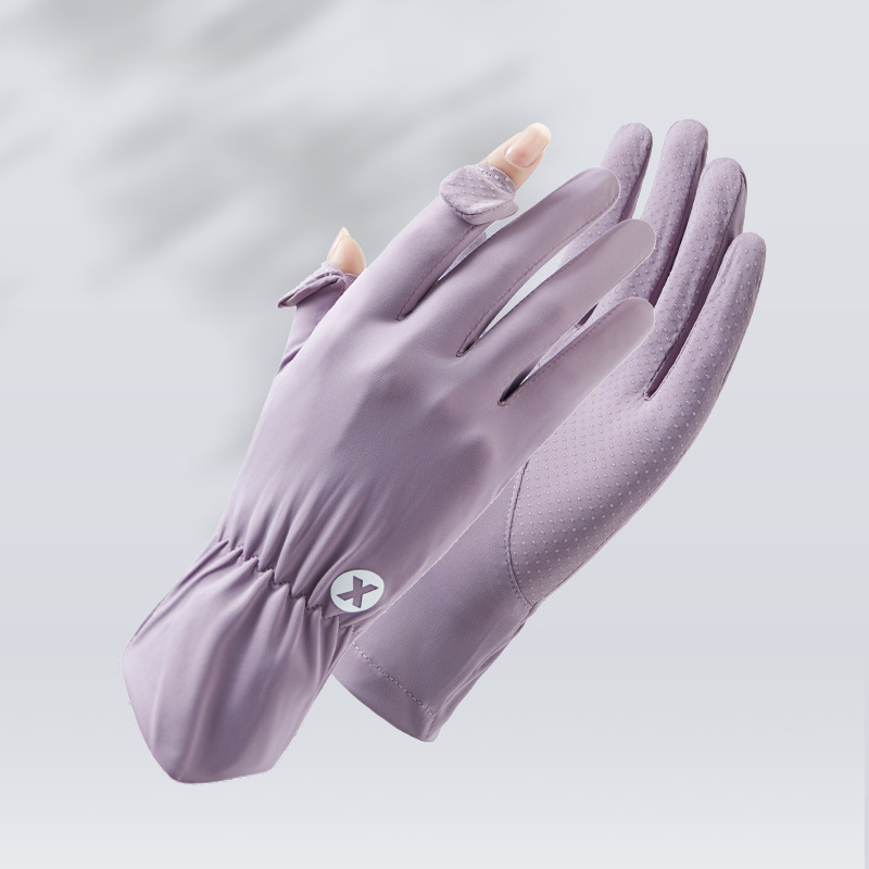 새로운 아이스 실크 선 스크린 장갑 플립 통기성 얇은 여름 여성 드라이빙 아이스 라이딩 미끄럼 방지 손가락 터치 스크린