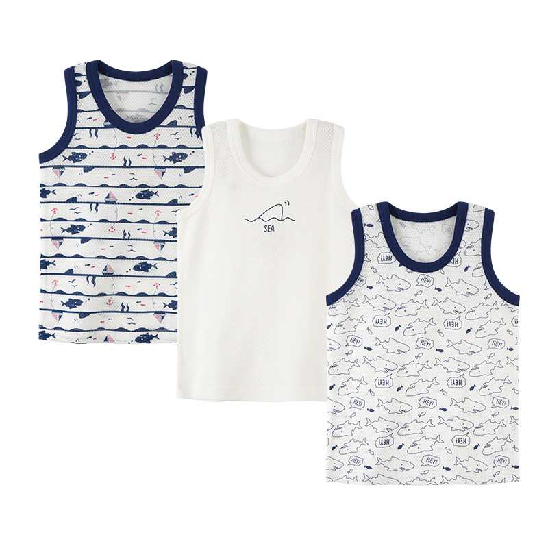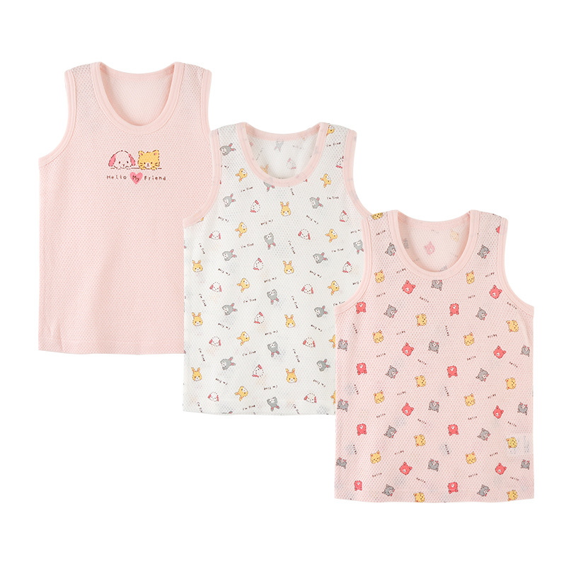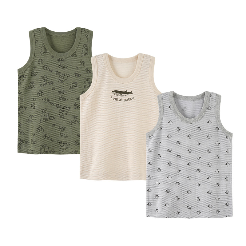 여름 어린이 메쉬 조끼 3 종 세트 순면 민소매 조끼 소년 소녀 초박형 멋진 아기 구멍 옷