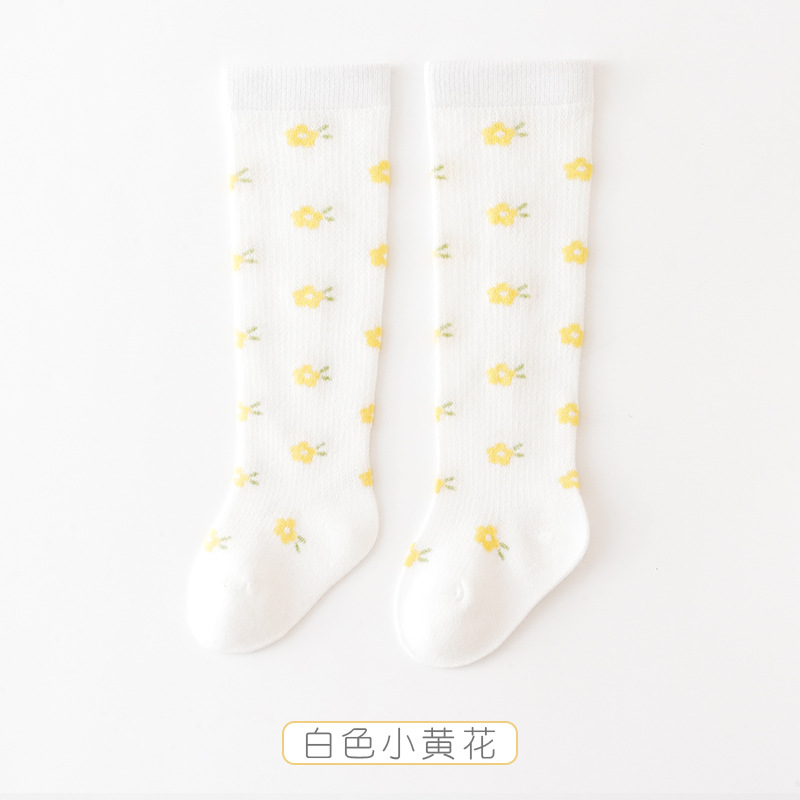 2024 뼈없는 모기방지 양말, 아기 스타킹, 여름 꽃무늬 메쉬 통기성 아기 양말, 다리 조임 방지 무릎양말