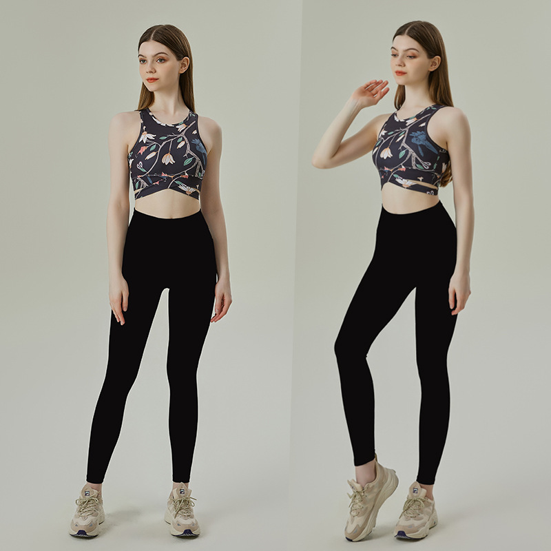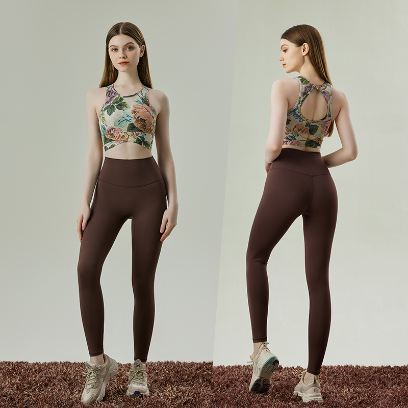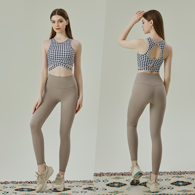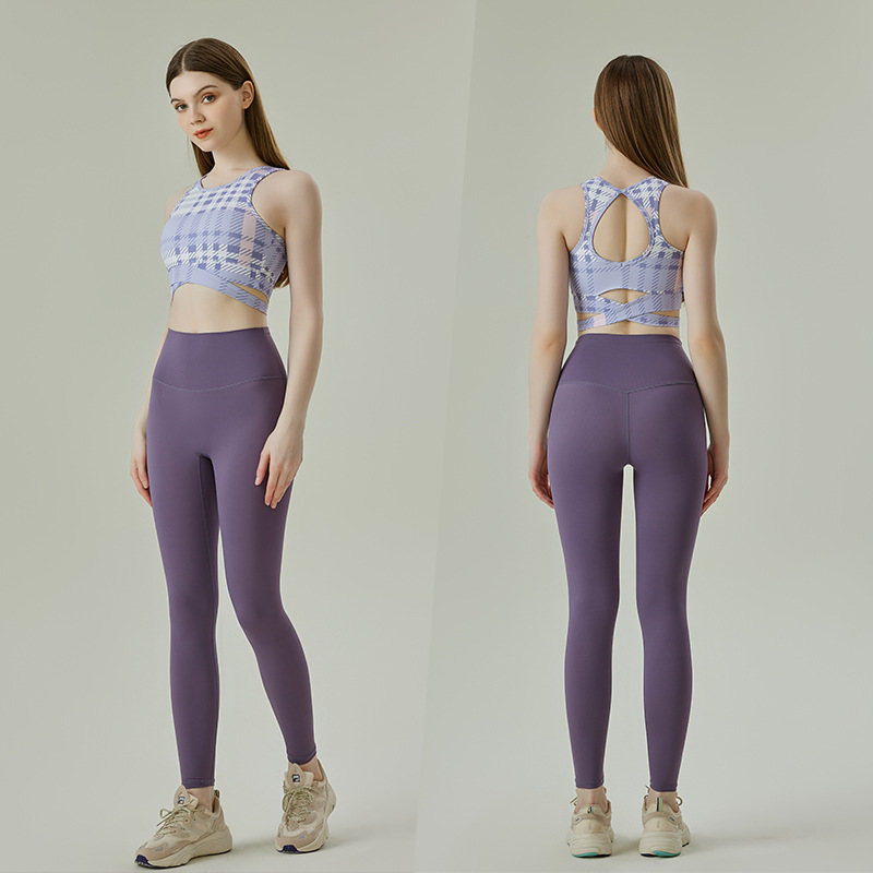 크로스 보더 유럽과 미국 룰루 알몸 요가 의류 세트 여성의 스포츠 속옷 하이 웨이스트 엉덩이 달리기 피트니스 필라테스 여름