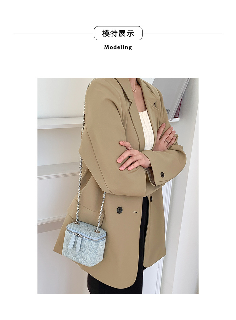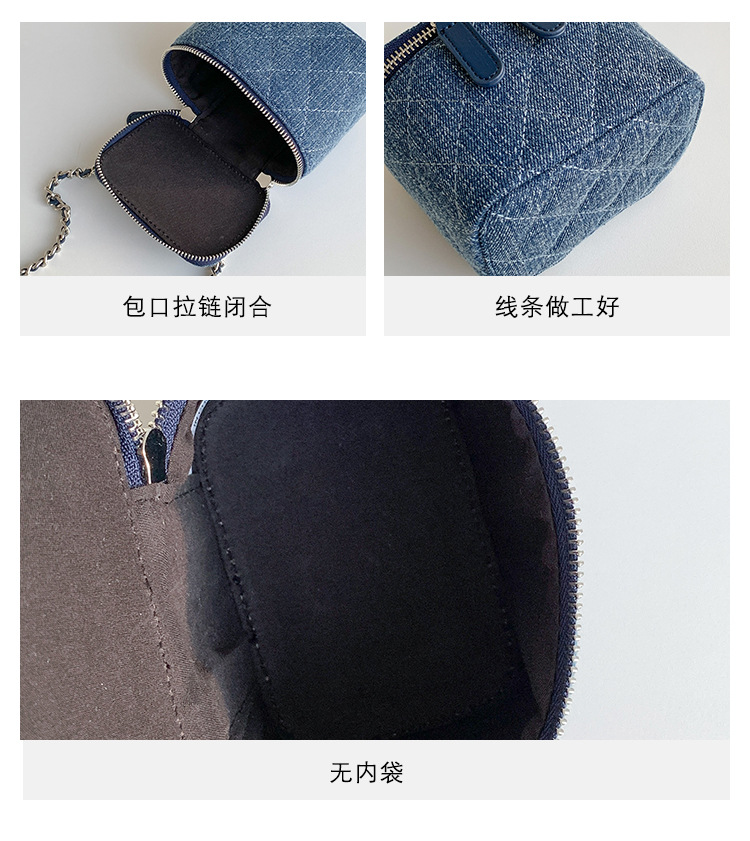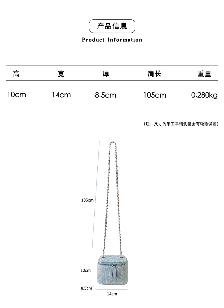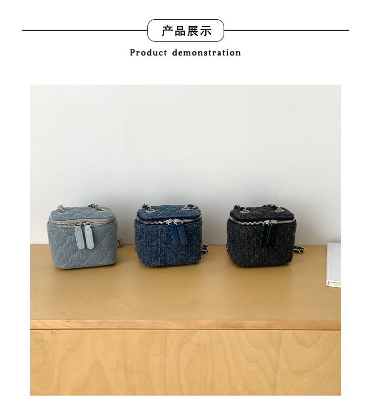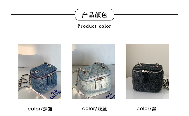 秋季款休闲复古迷你牛仔包百搭时尚女式小香风菱格链条斜挎盒子包