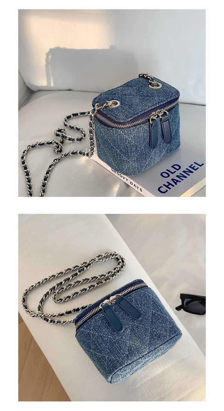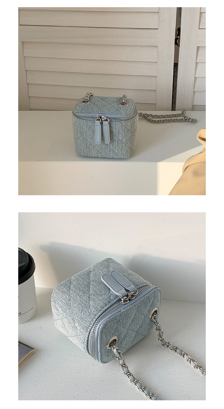 한국 스타일 캐주얼 레트로 미니 데님 가방 여성용 체인 크로스백 작은 사이즈 다용도 패션 샤넬 스타일 마름모꼴 박스백스토어 가기